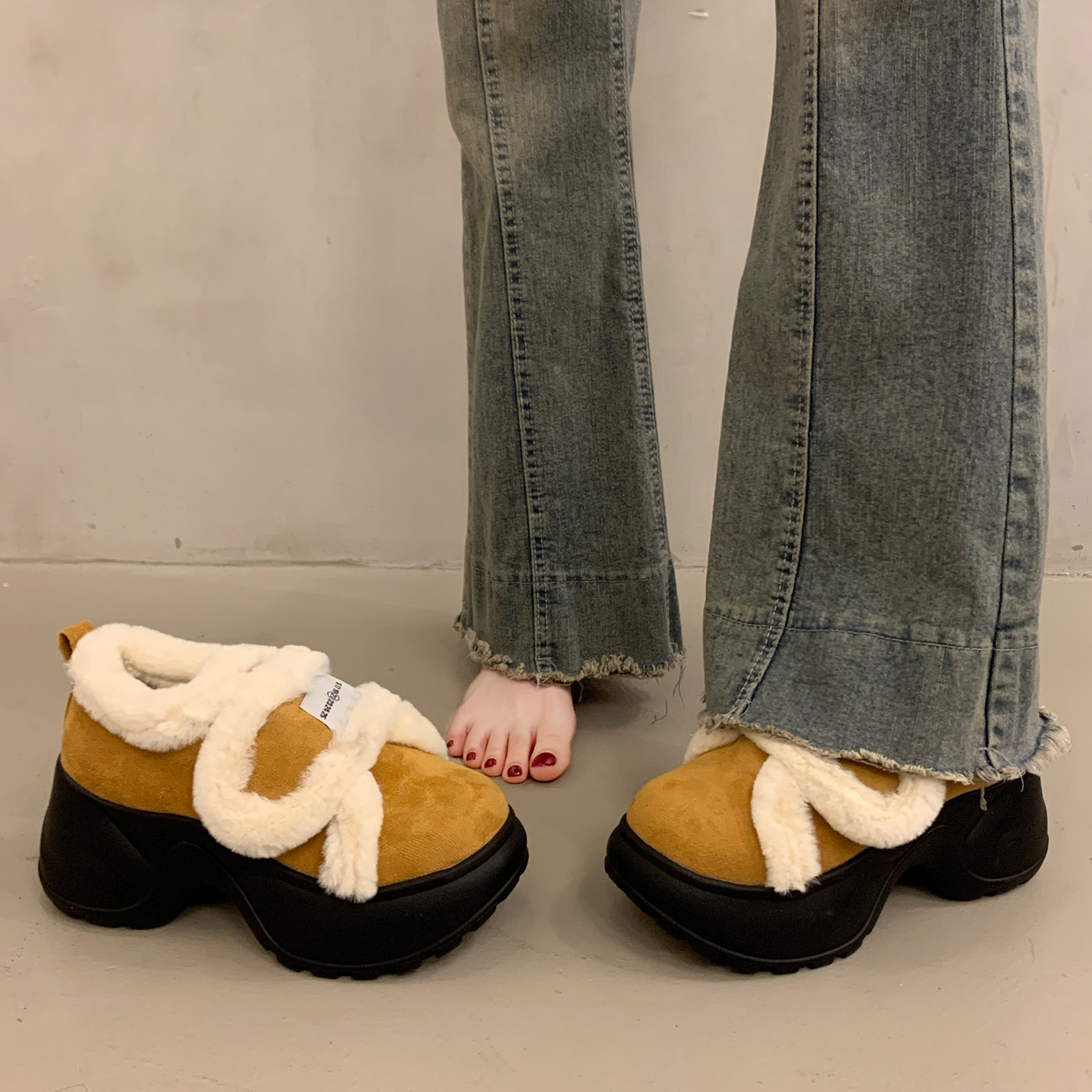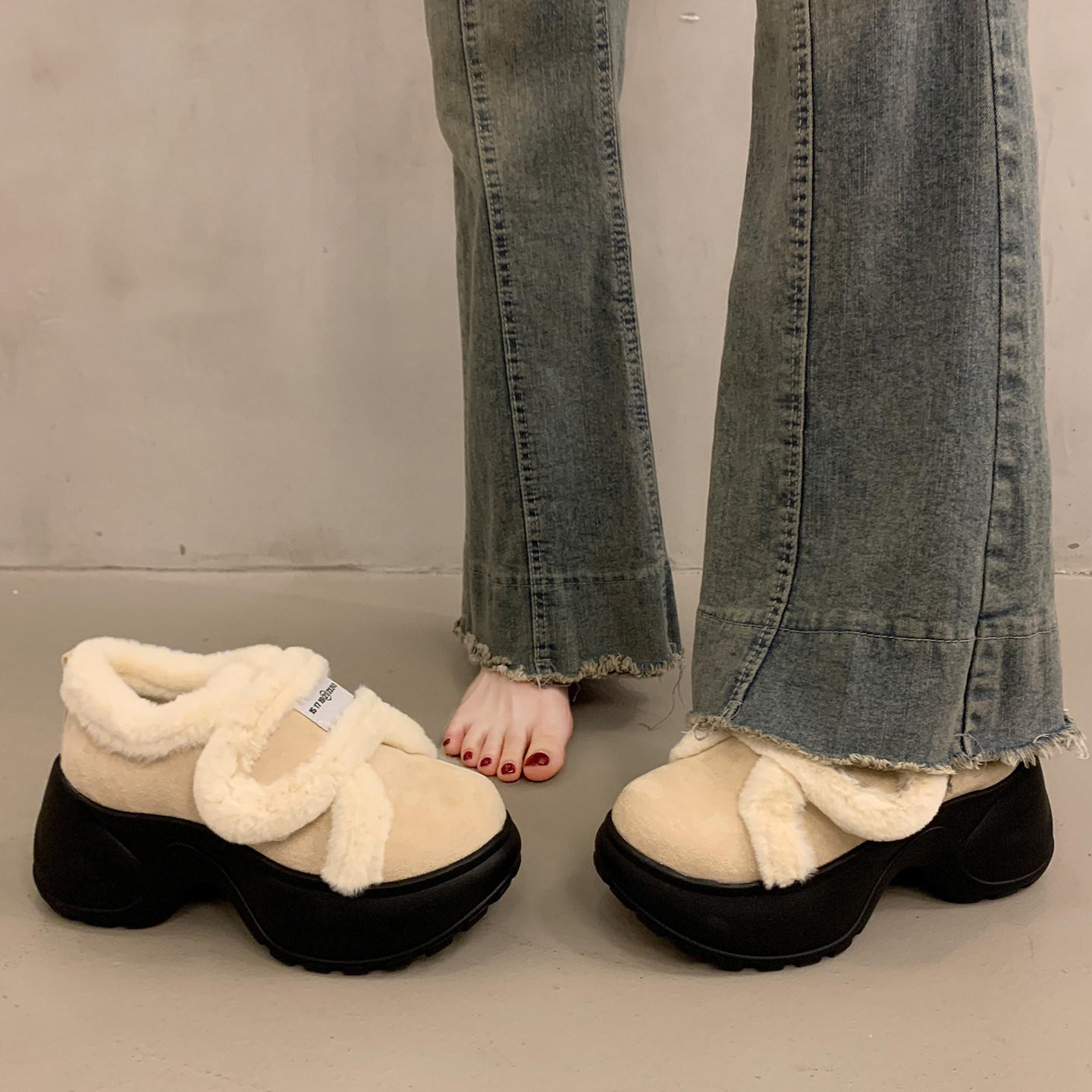 配裙子玛丽珍毛毛棉鞋 2025新款 女秋冬季 绝美加绒增高厚底深口单鞋