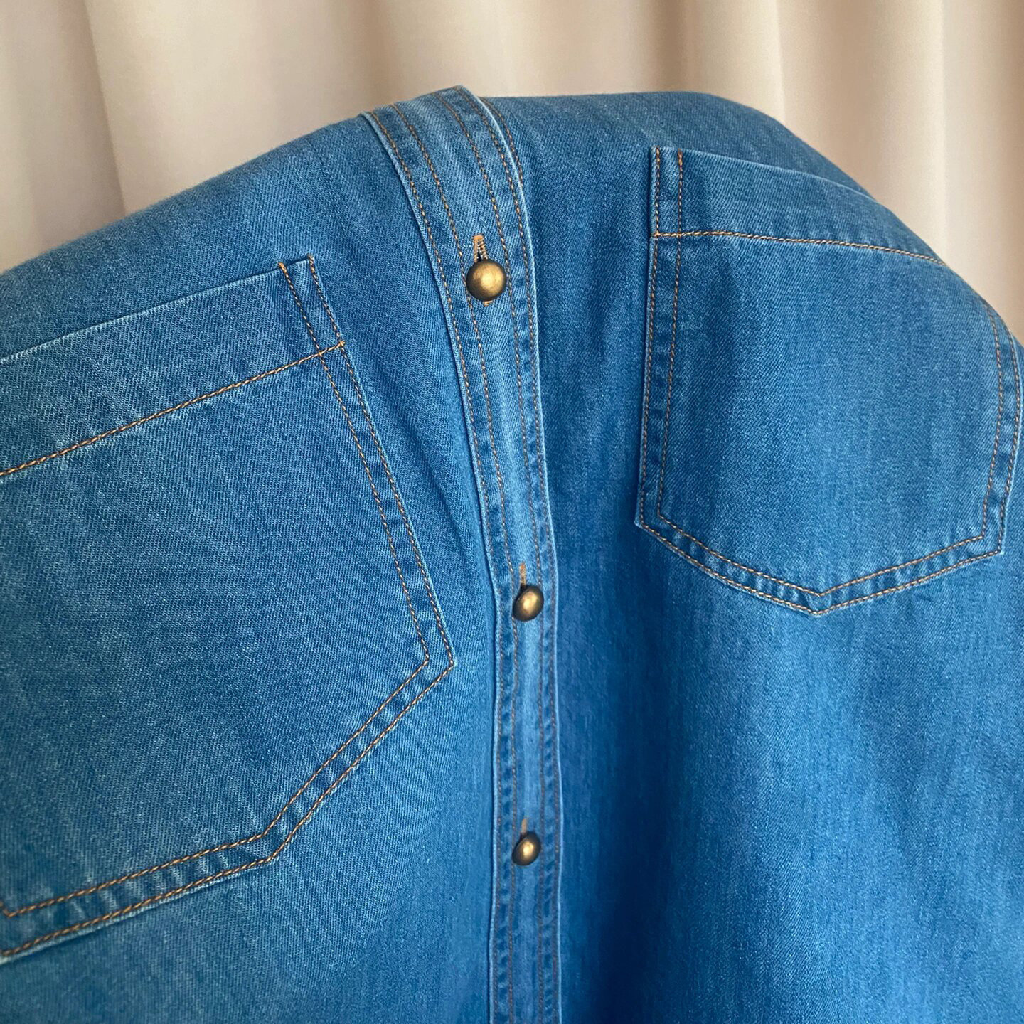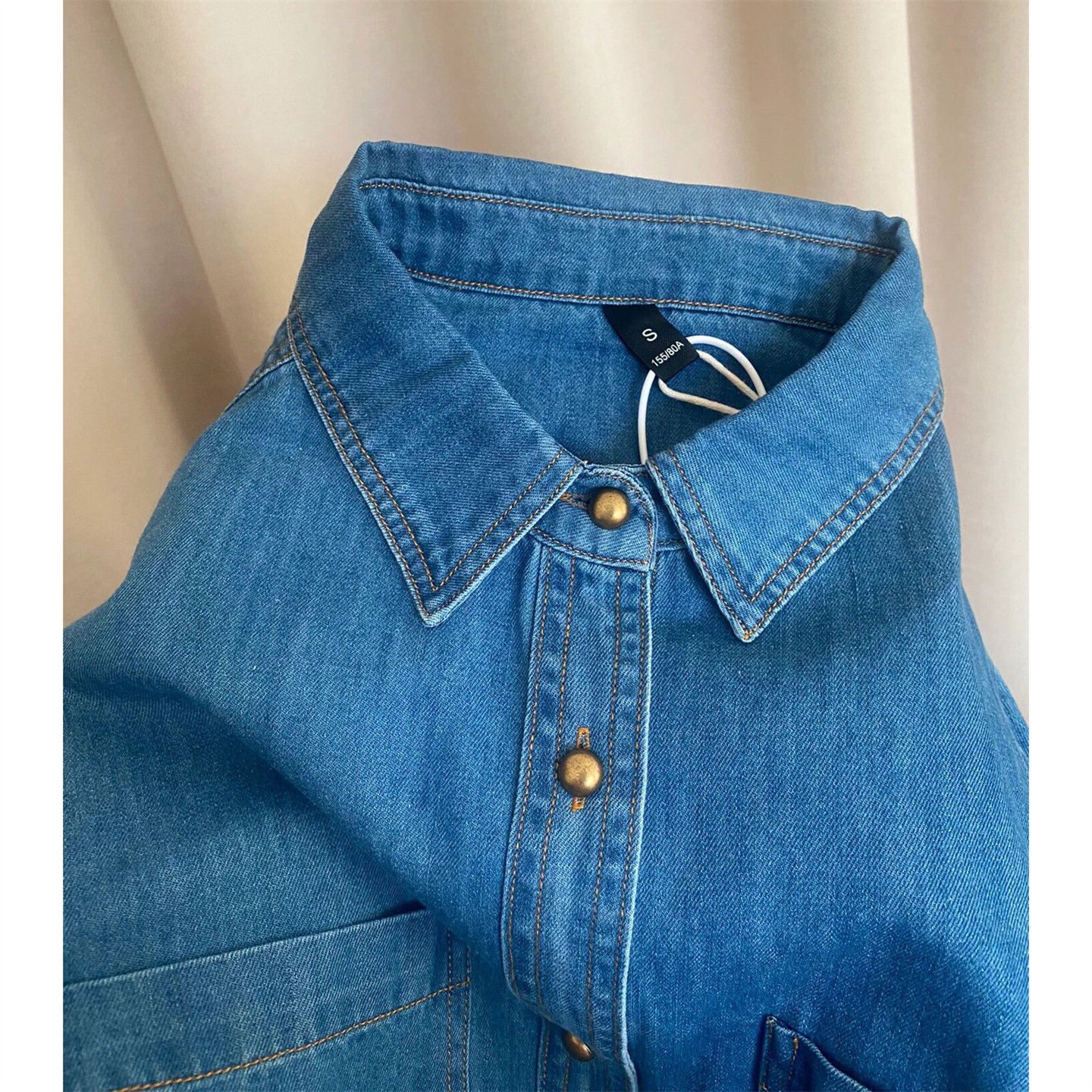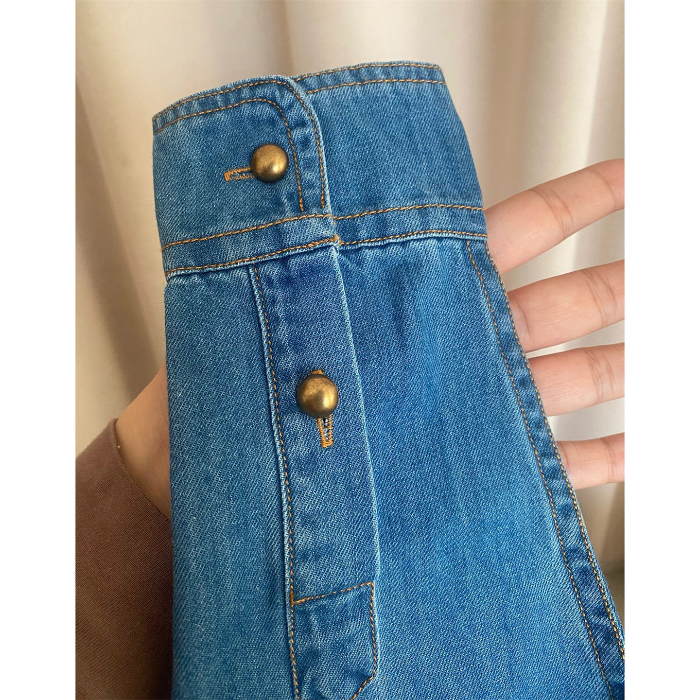 时尚 自留款 女秋季 复古做旧蓝色牛仔衬衫 百搭设计感正肩上衣 推荐