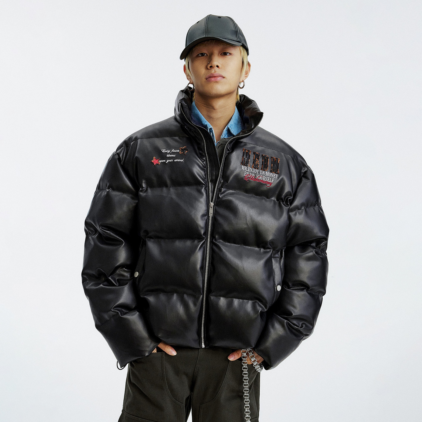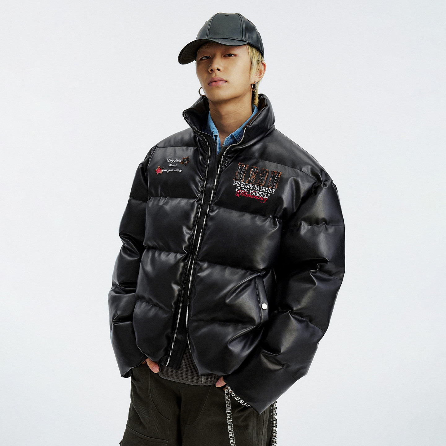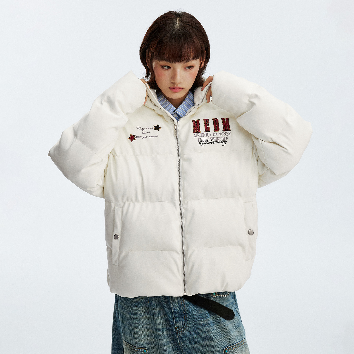 华人青年基础logo拼接棉服外套潮牌情侣休闲保暖立领棉衣面包服