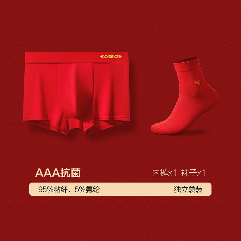 属兔年结婚礼物 男生纯棉大红色四角四角短S裤 本命年男士 内裤