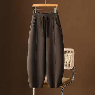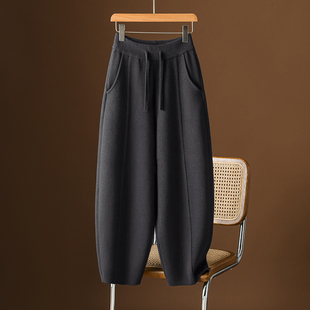 潮 高腰哈伦休闲弯刀裤 重磅双面绒香蕉裤 女秋冬加厚宽松镰刀阔腿裤