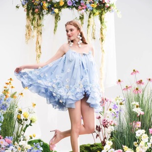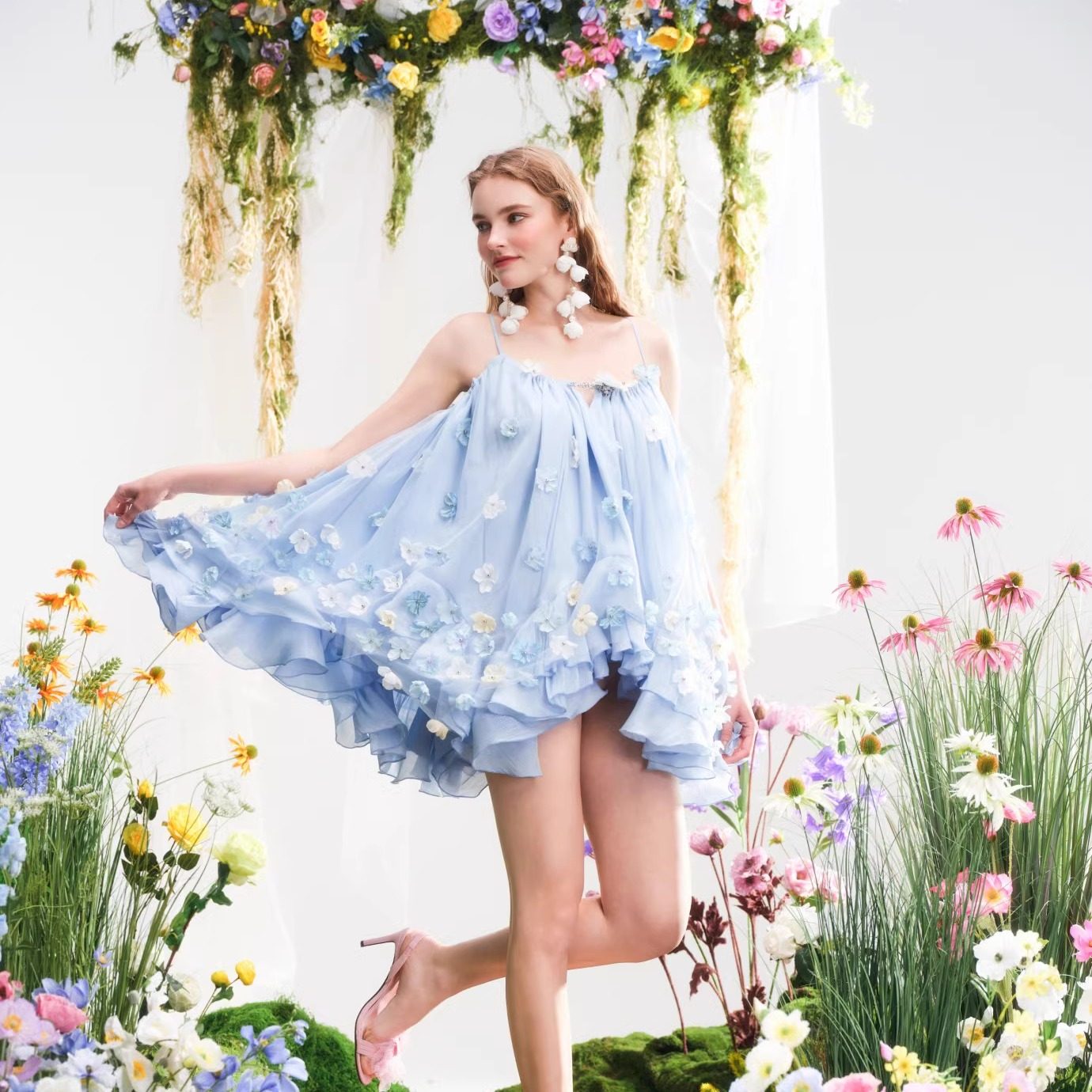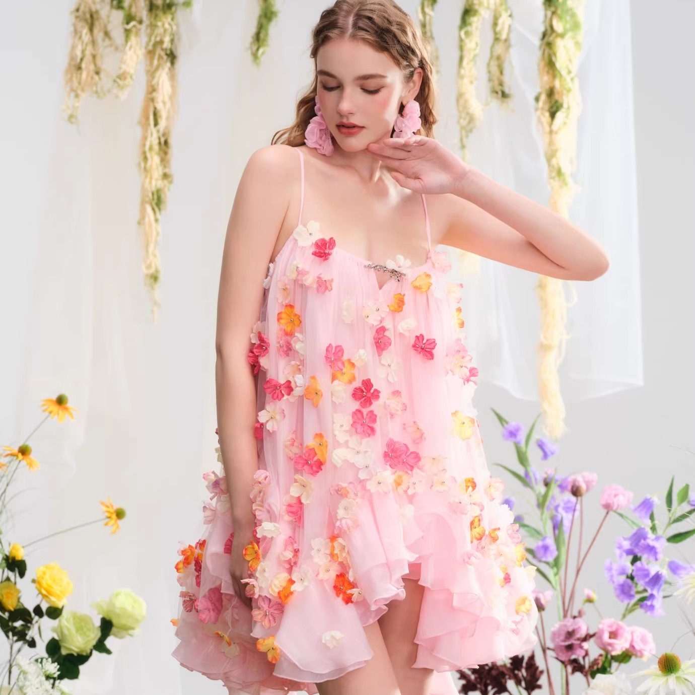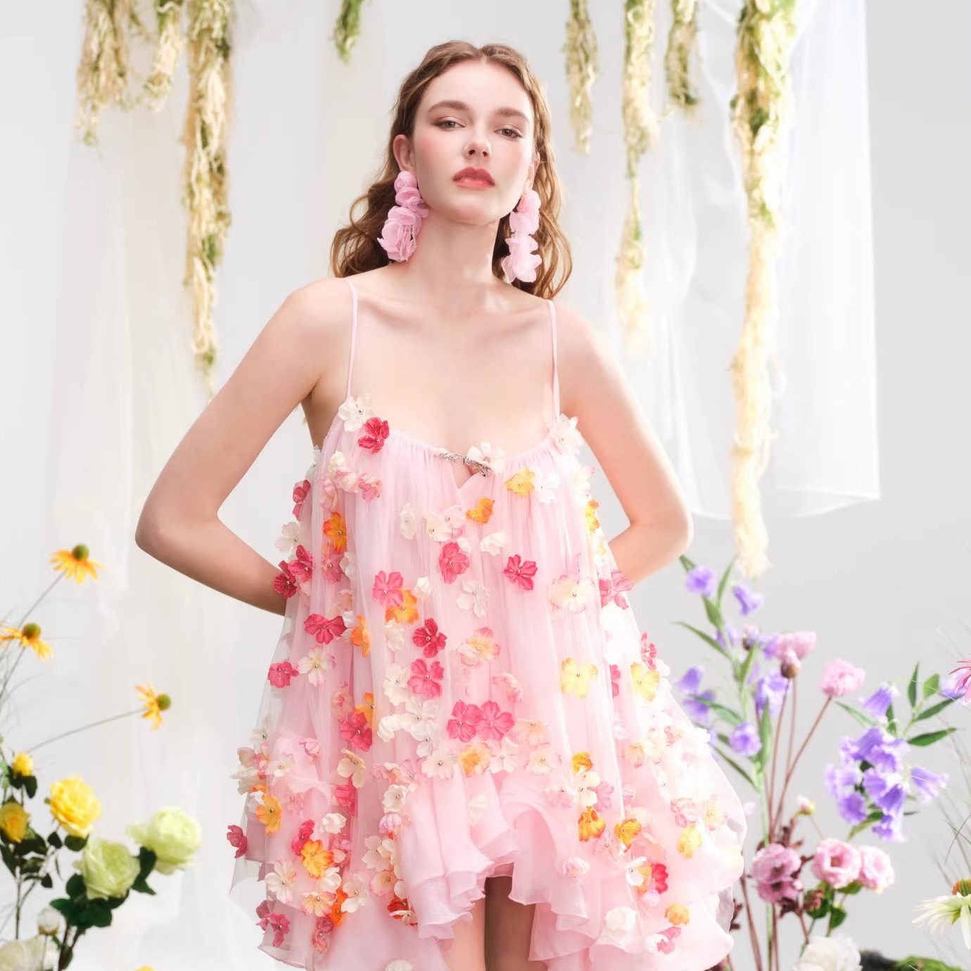 官方授权2025SS 设计师AKEMO 甜美立体花朵公主裙 折