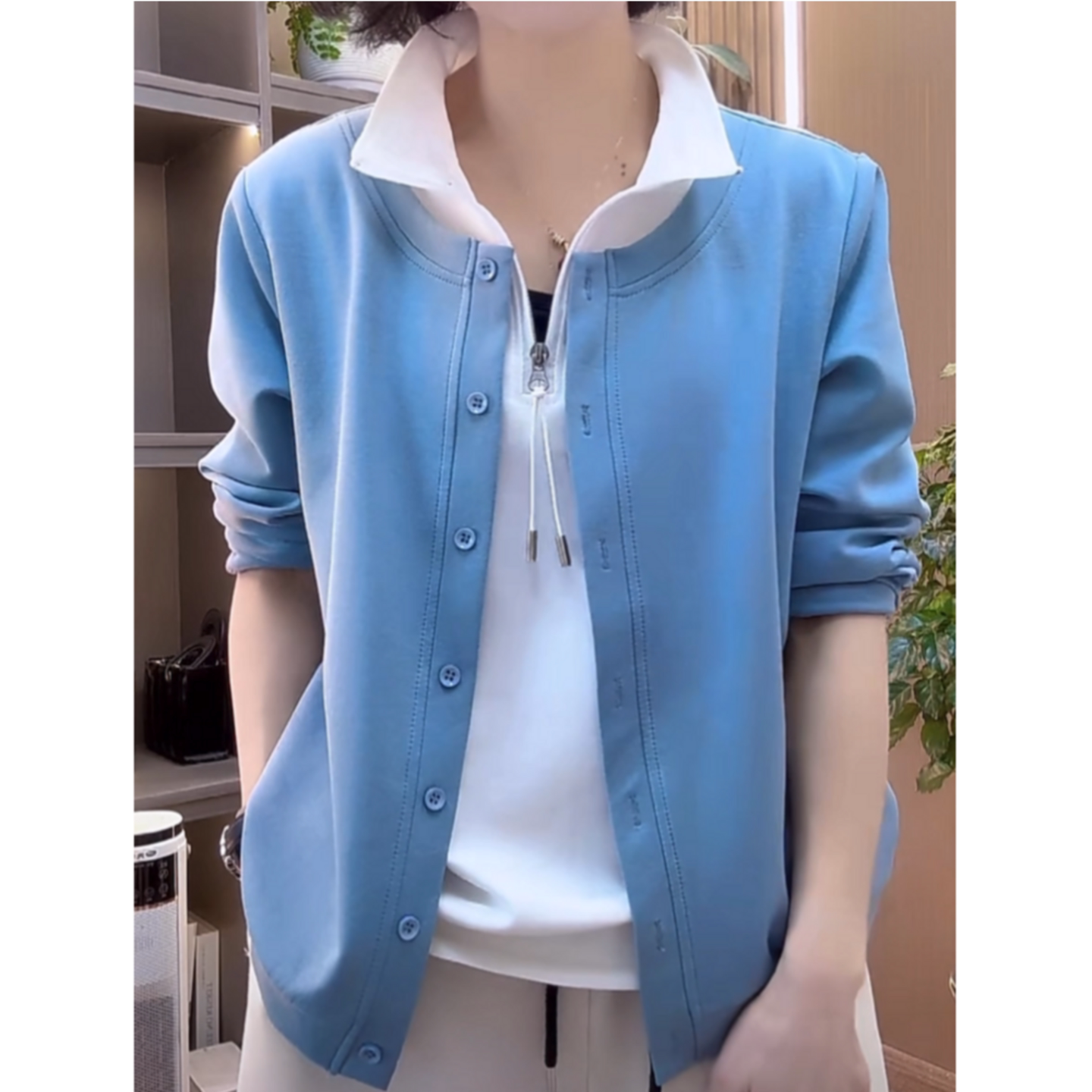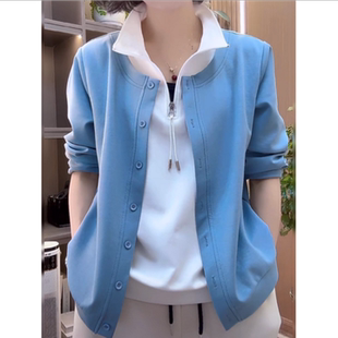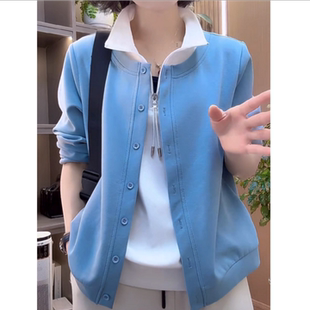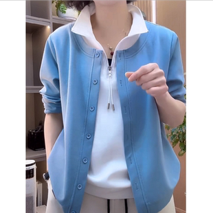 女洋气妈妈装 春秋新款 卫衣百搭打底衫 休闲长袖 上衣 假两件拉链时尚