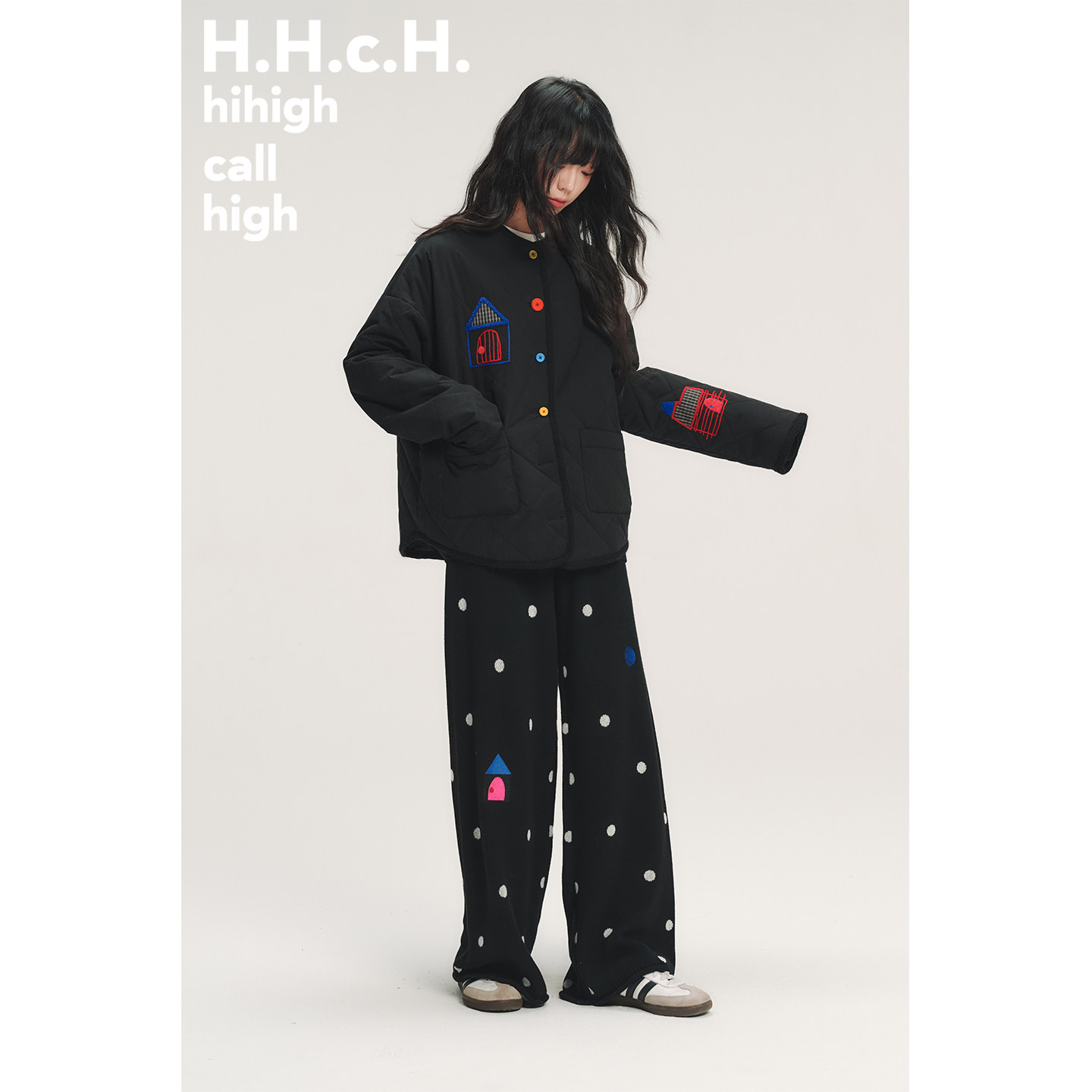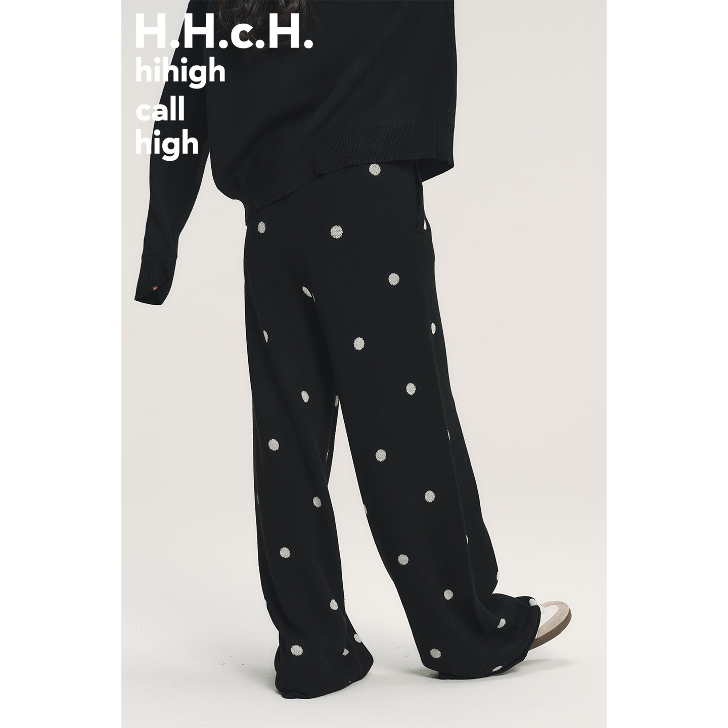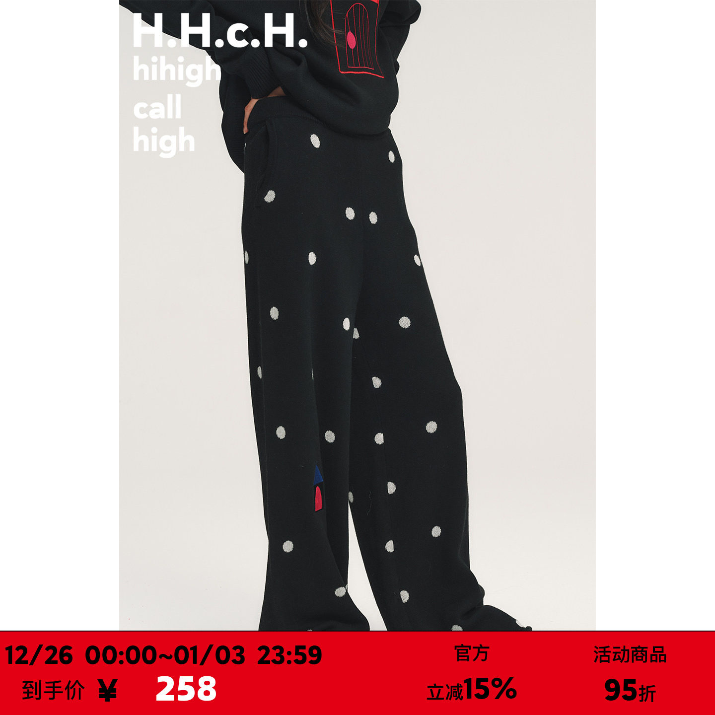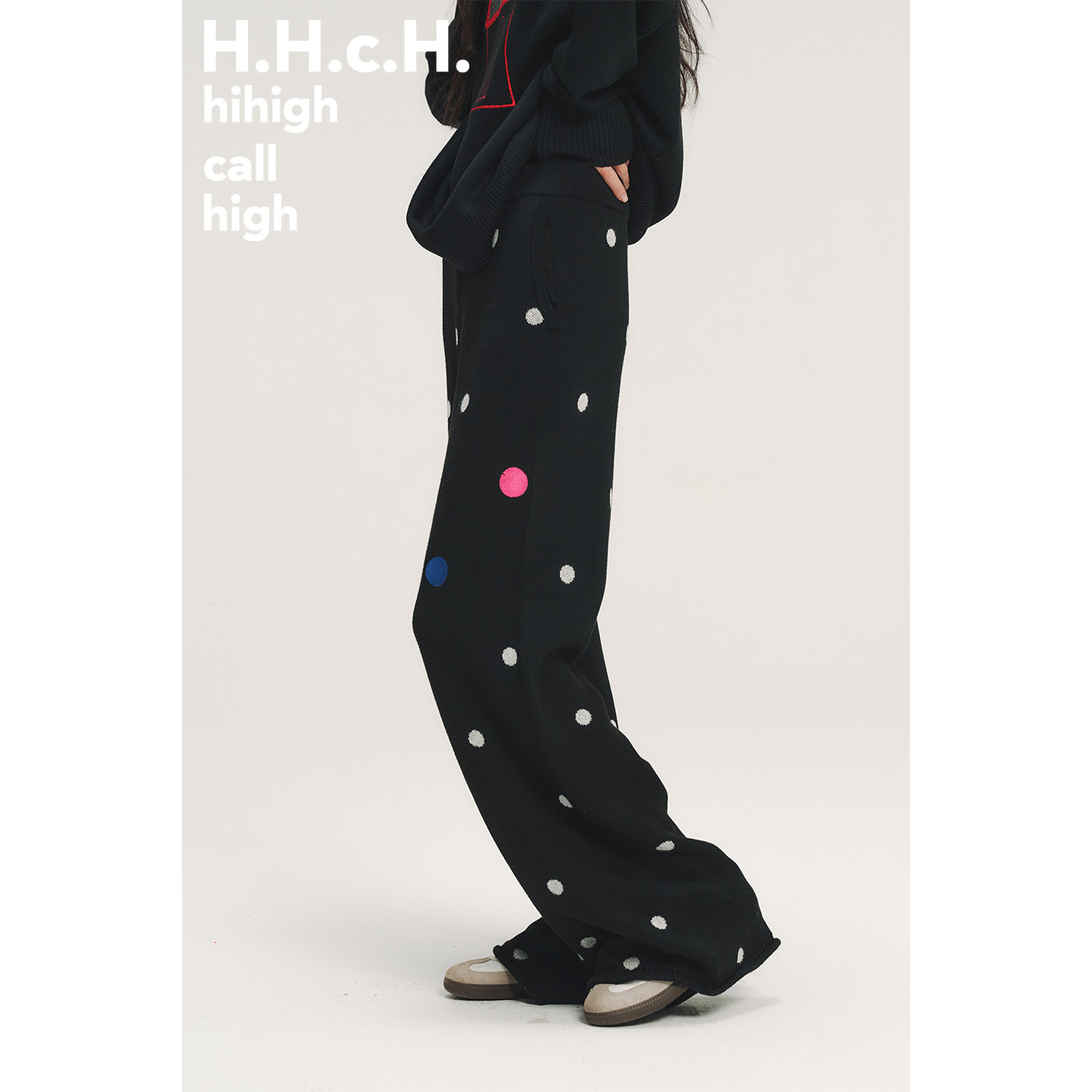 彩色房子撞色绣花松紧腰波点提花针织直筒长裤 HHCH口海 AW25
