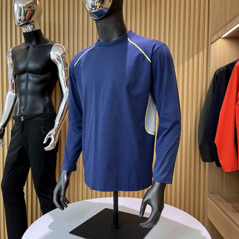 T恤 秋冬撞色哈苏线吸湿透气运动长袖 重磅山系户外 男女情侣款