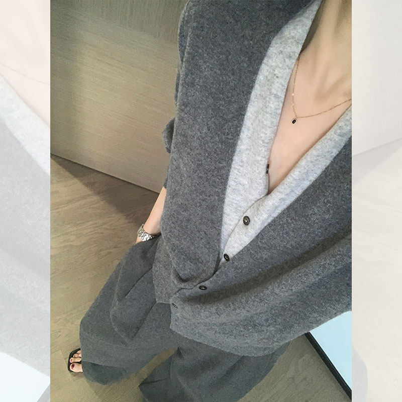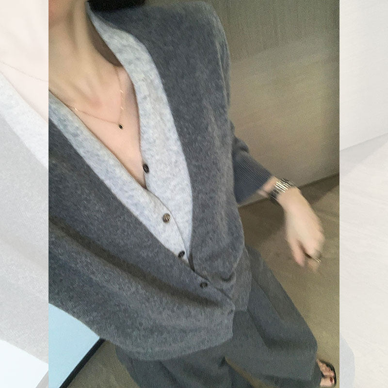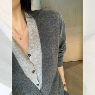 老钱风灰色v领假两件毛衣外套女秋冬高级感宽松针织开衫 上衣 短款