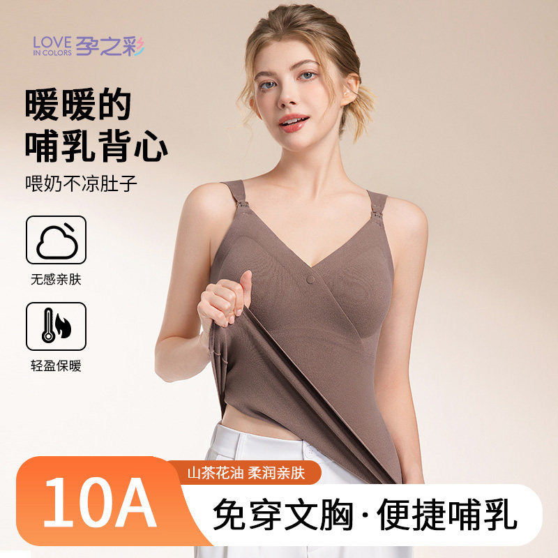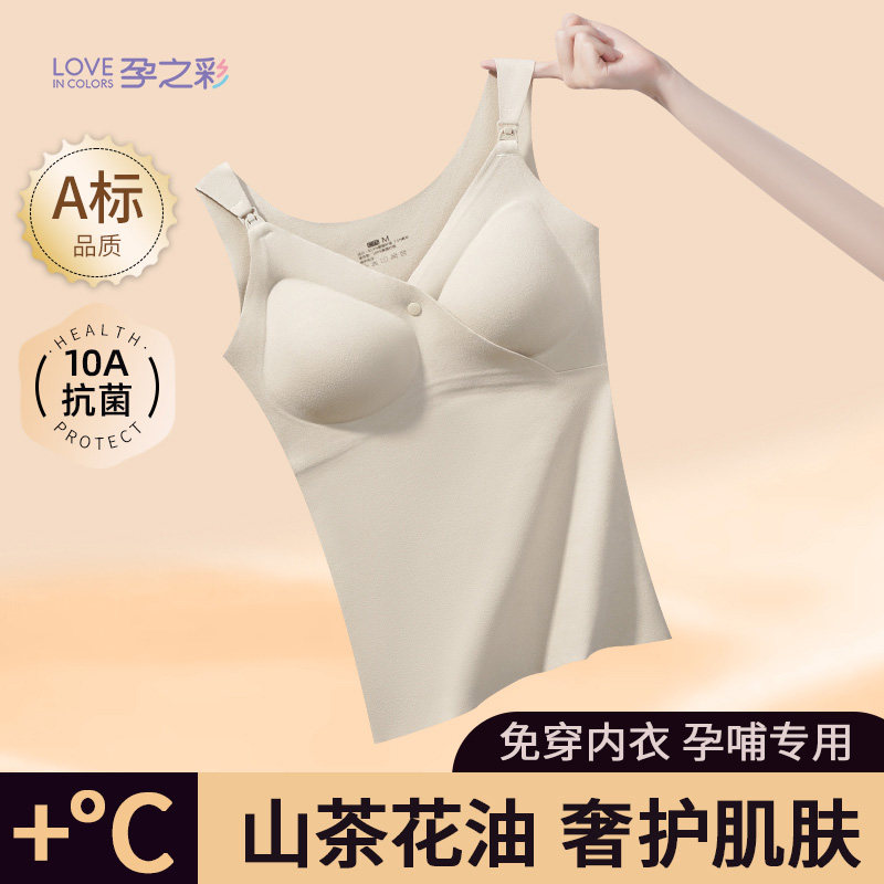 孕之彩孕妇哺乳背心秋冬款 产后保暖喂奶内衣抑菌亲肤免穿文胸两件