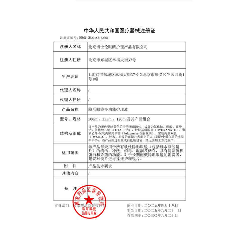 120ml美瞳专用清洁液大小瓶 博士伦隐形眼镜护理液500 新品 优惠
