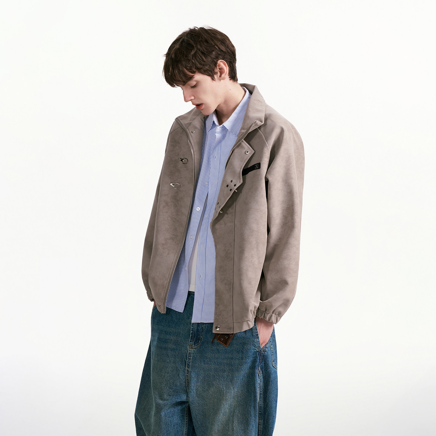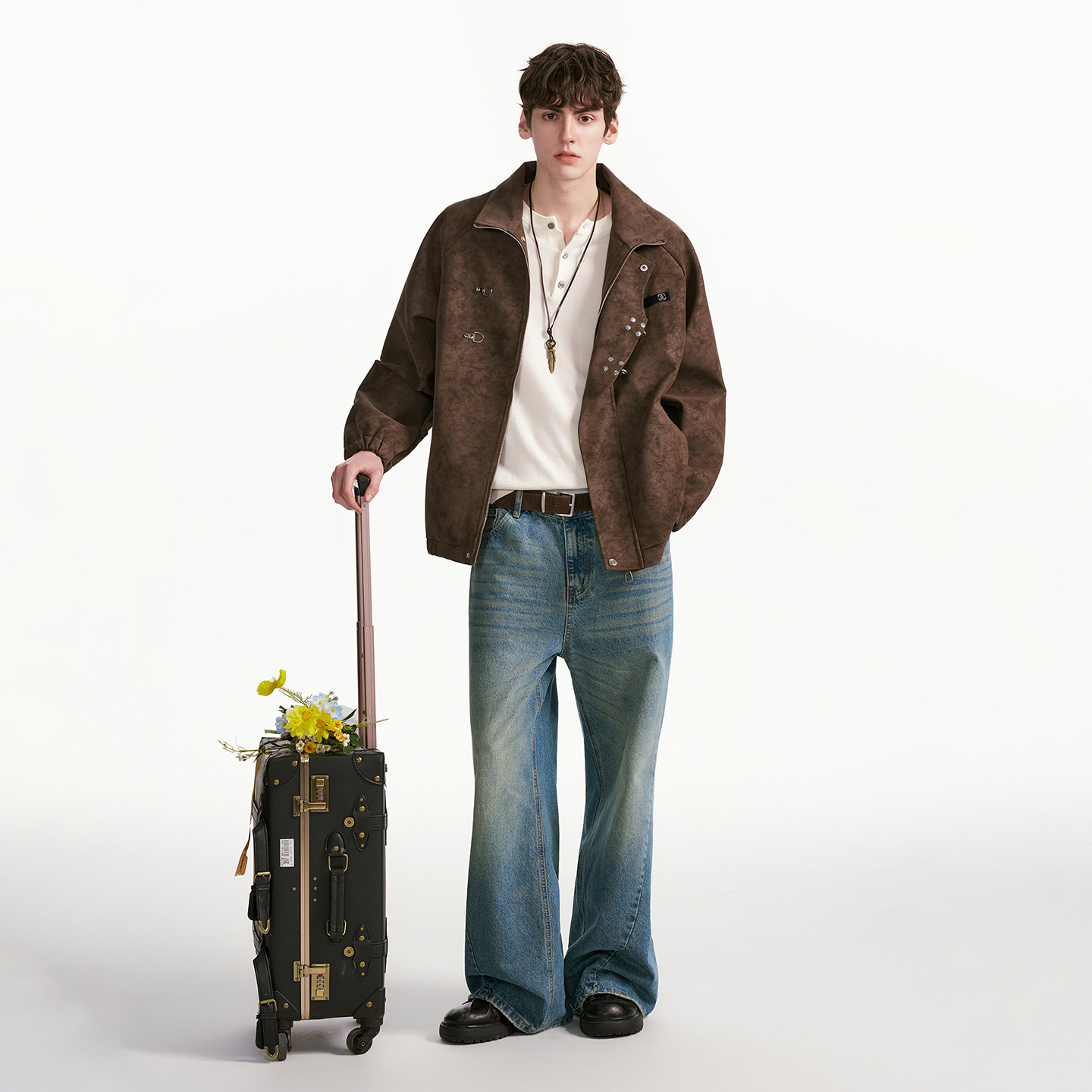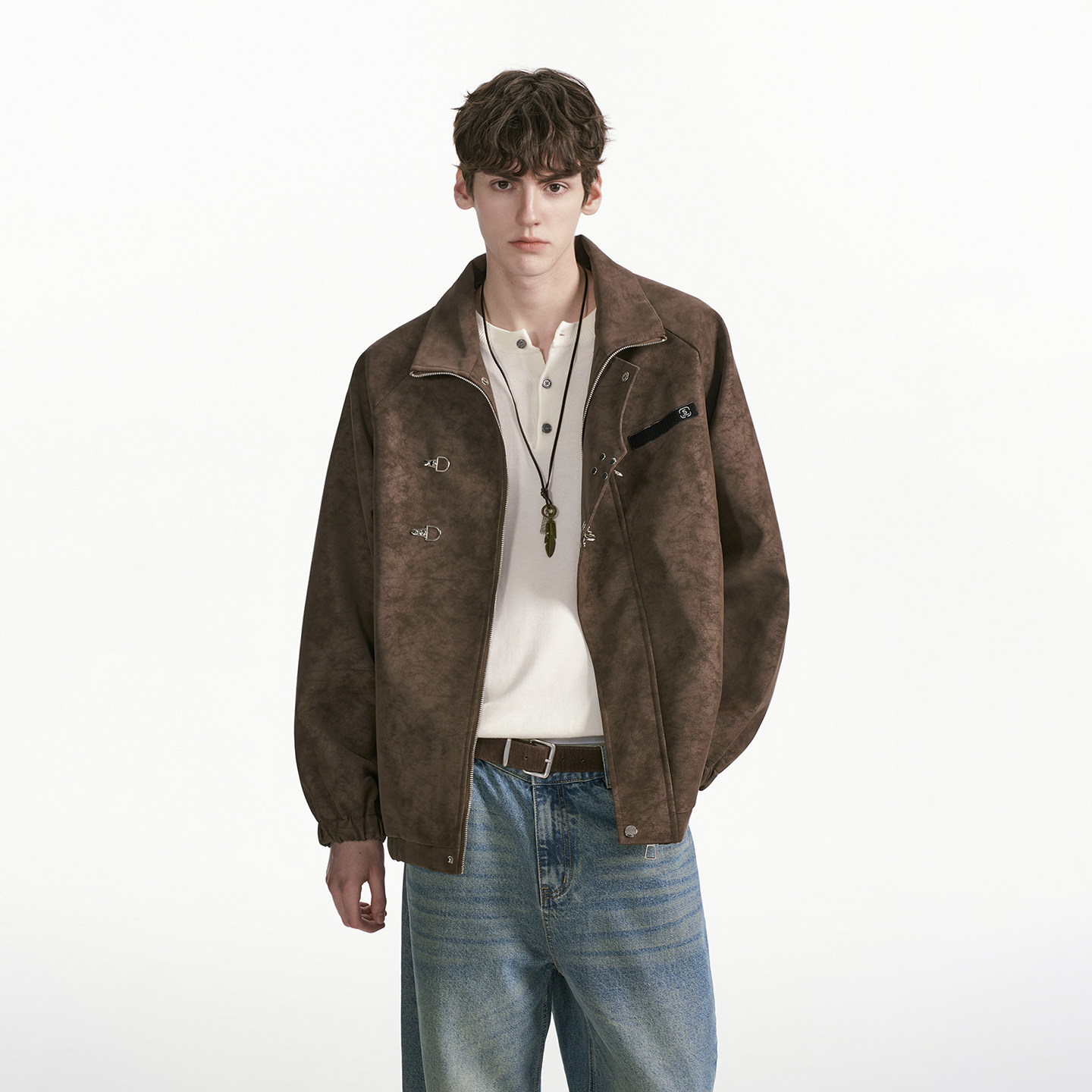 高级感机车夹克男生 复古飞机扣PU皮衣外套男春秋季 Dream made美式