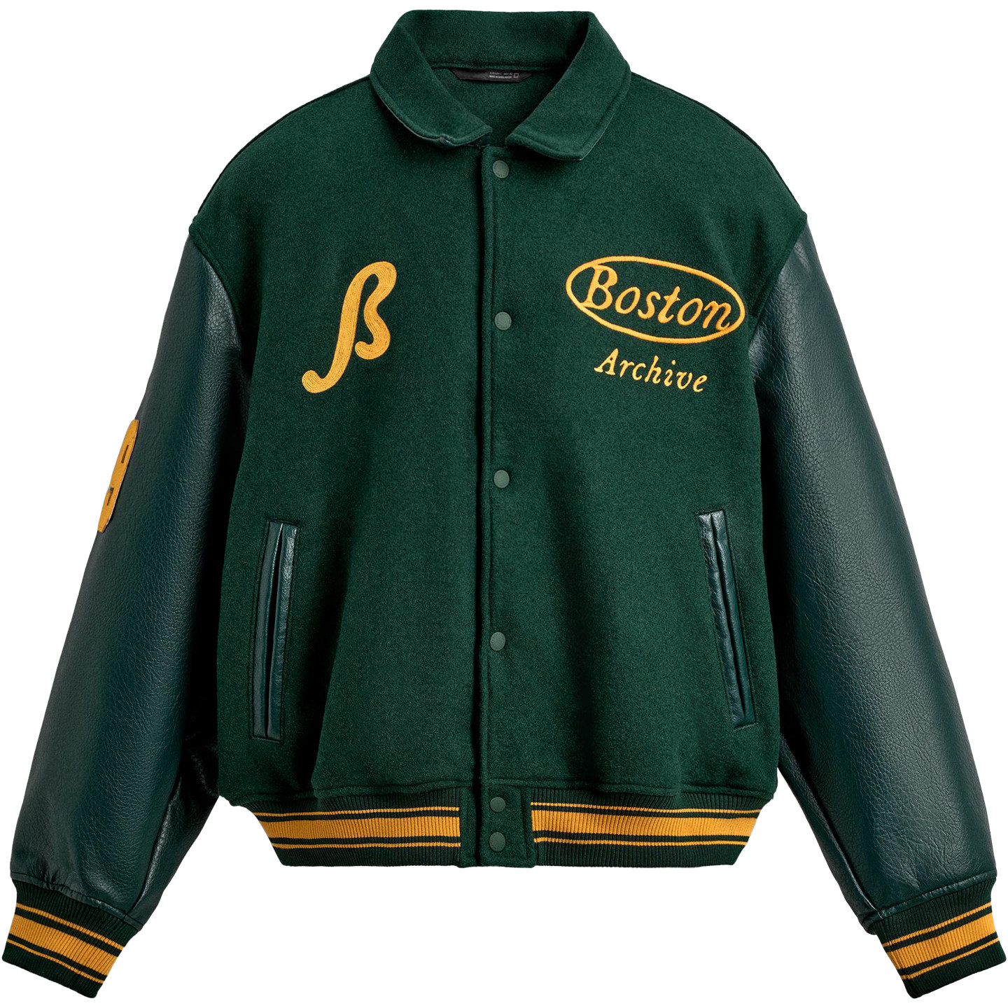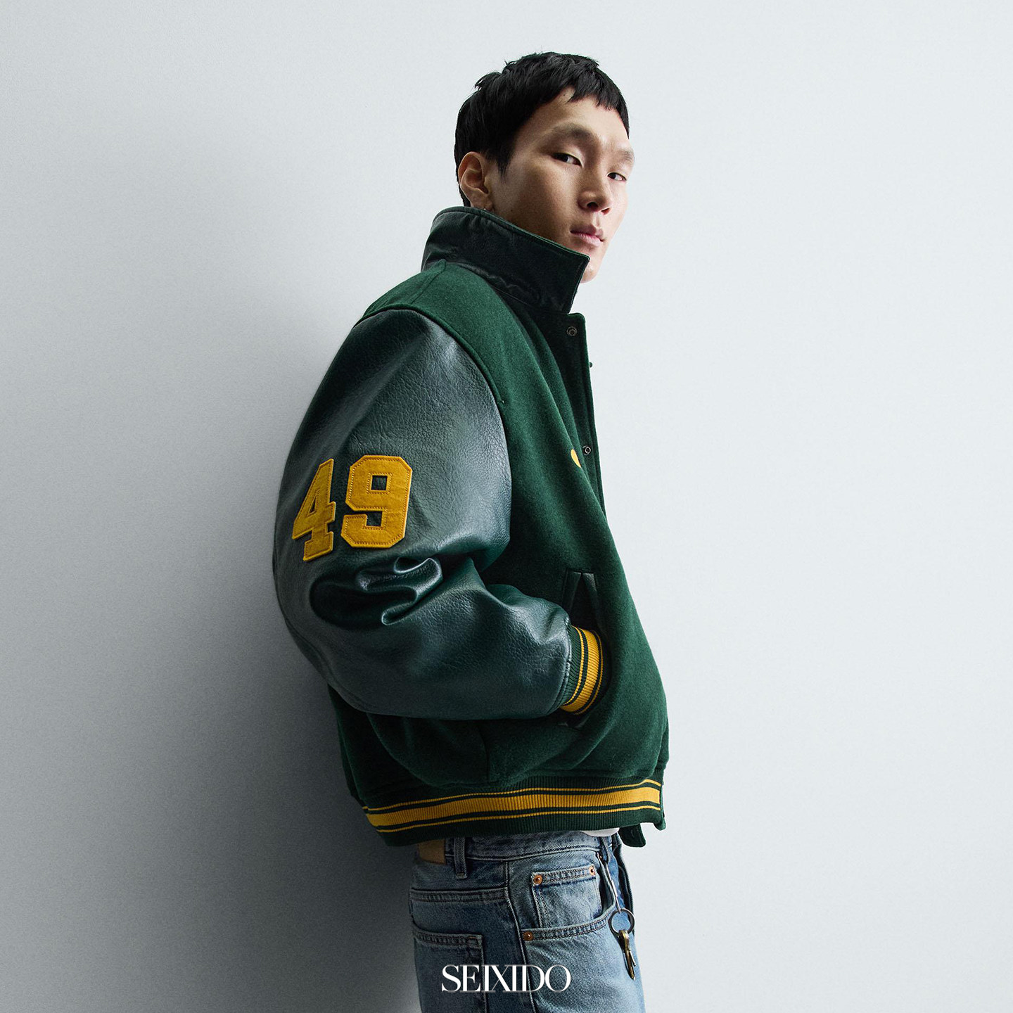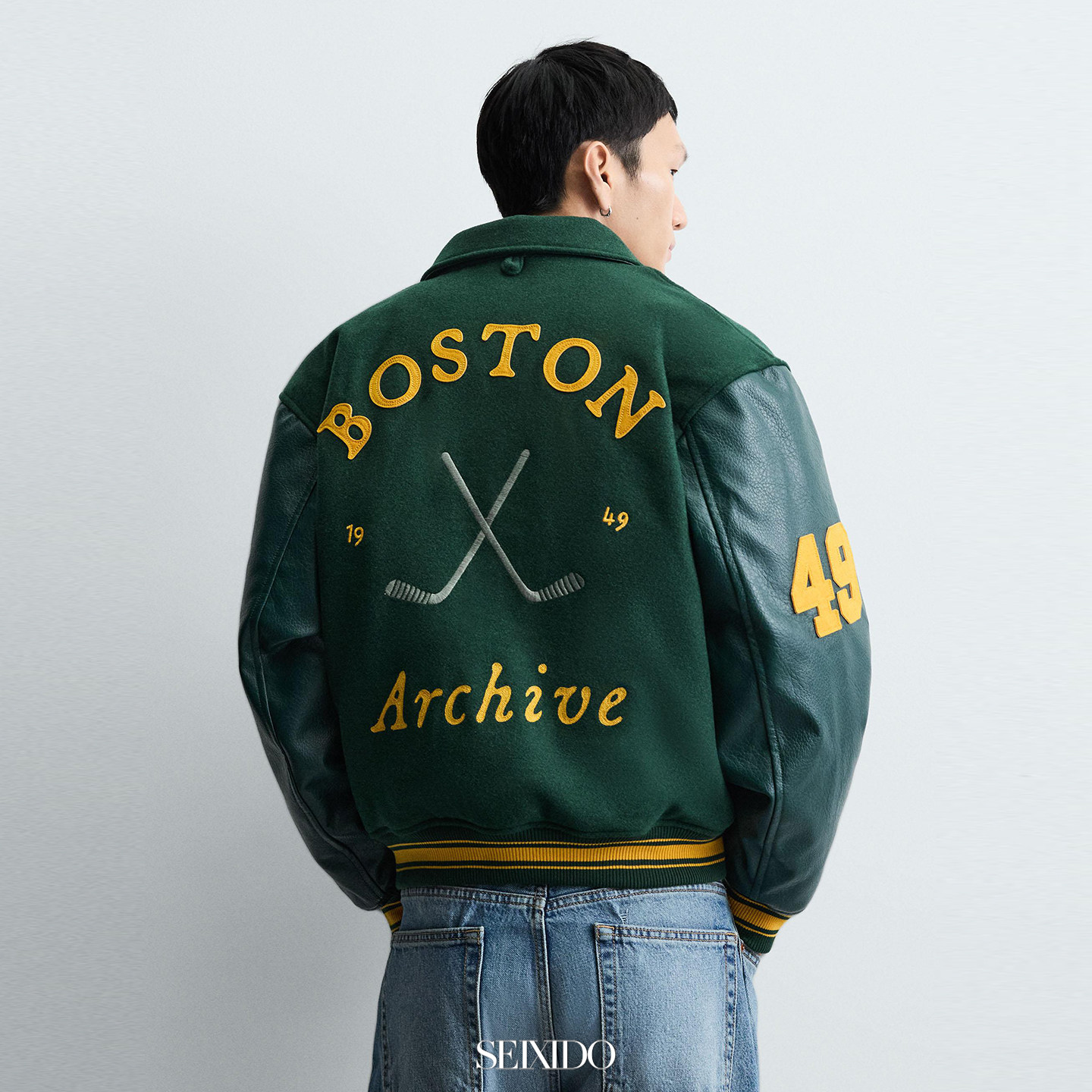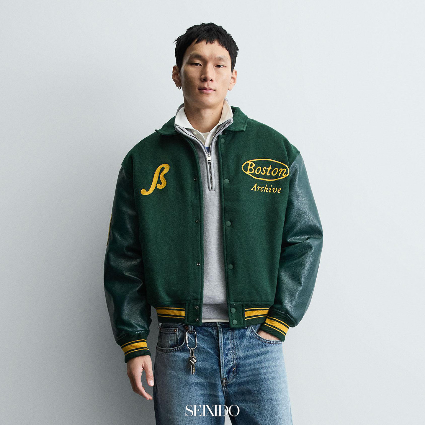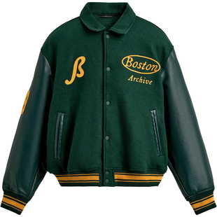 拼接刺绣夹克4302314 毛呢仿皮袖 500棉服外套 秋冬学院男装 柜799