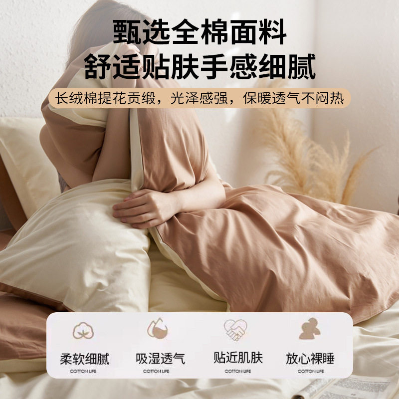轻奢全棉水洗棉床上四件套纯棉新款 双人宿舍床单被套三件套