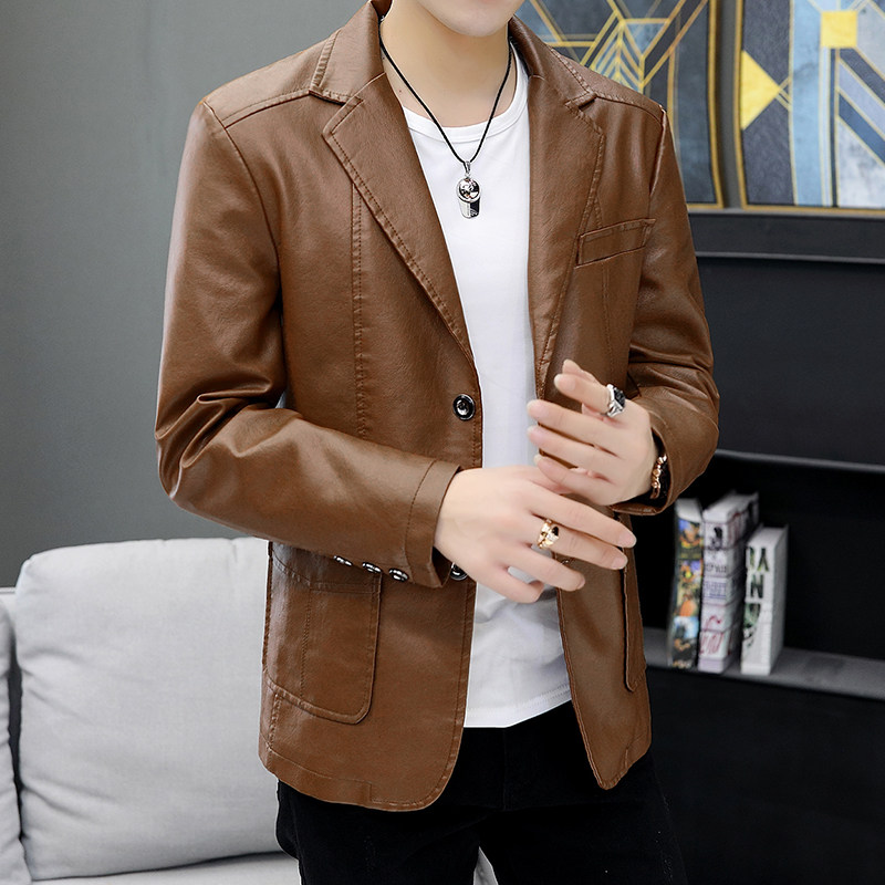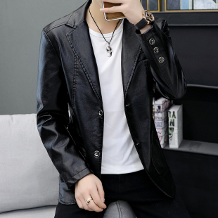 机车皮衣PU男装 男式 皮西服青年商务L修身 外套2021新款 夹 休闲西装