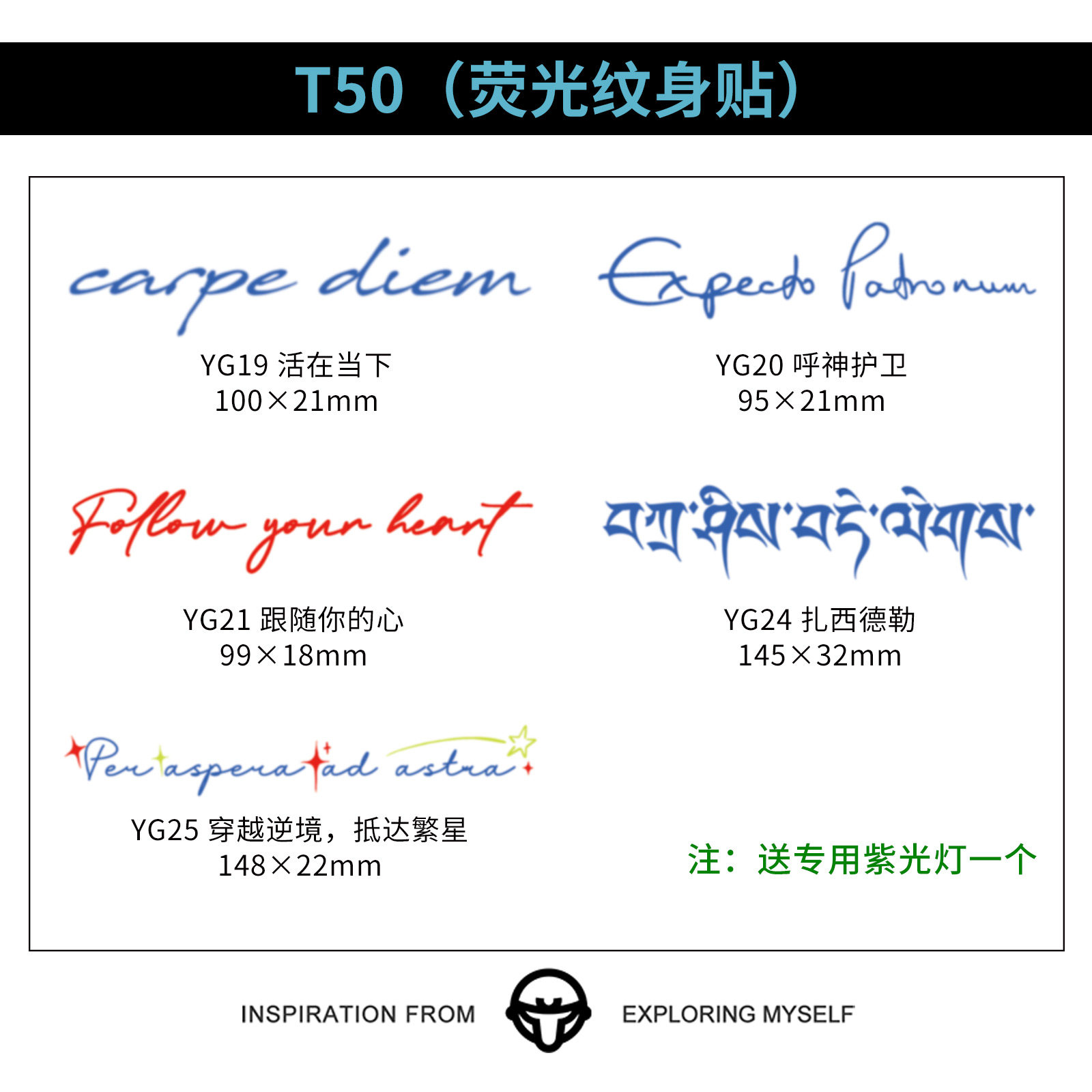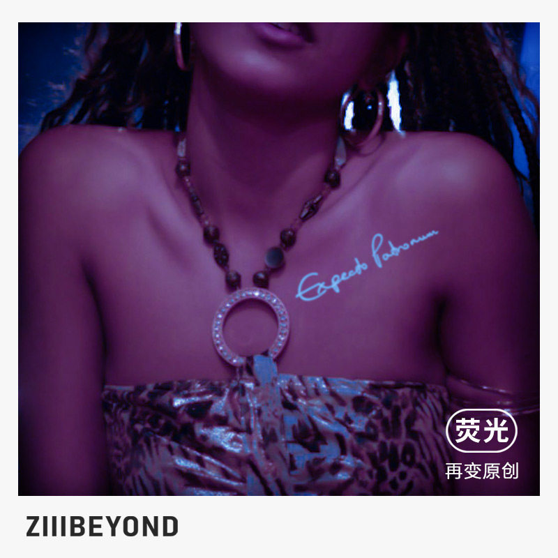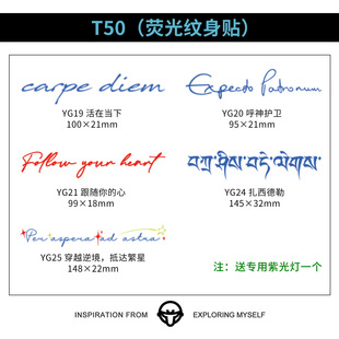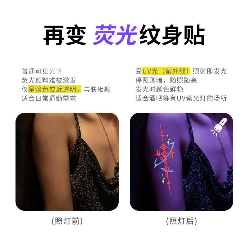 再变 荧光纹身贴英文句子彩色防水保持久夜店蹦迪发光贴纸高级感