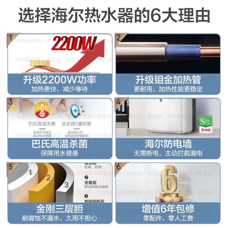 惊喜特惠海尔电热水器二级能效出品统帅热水器家用节能速热60 80L