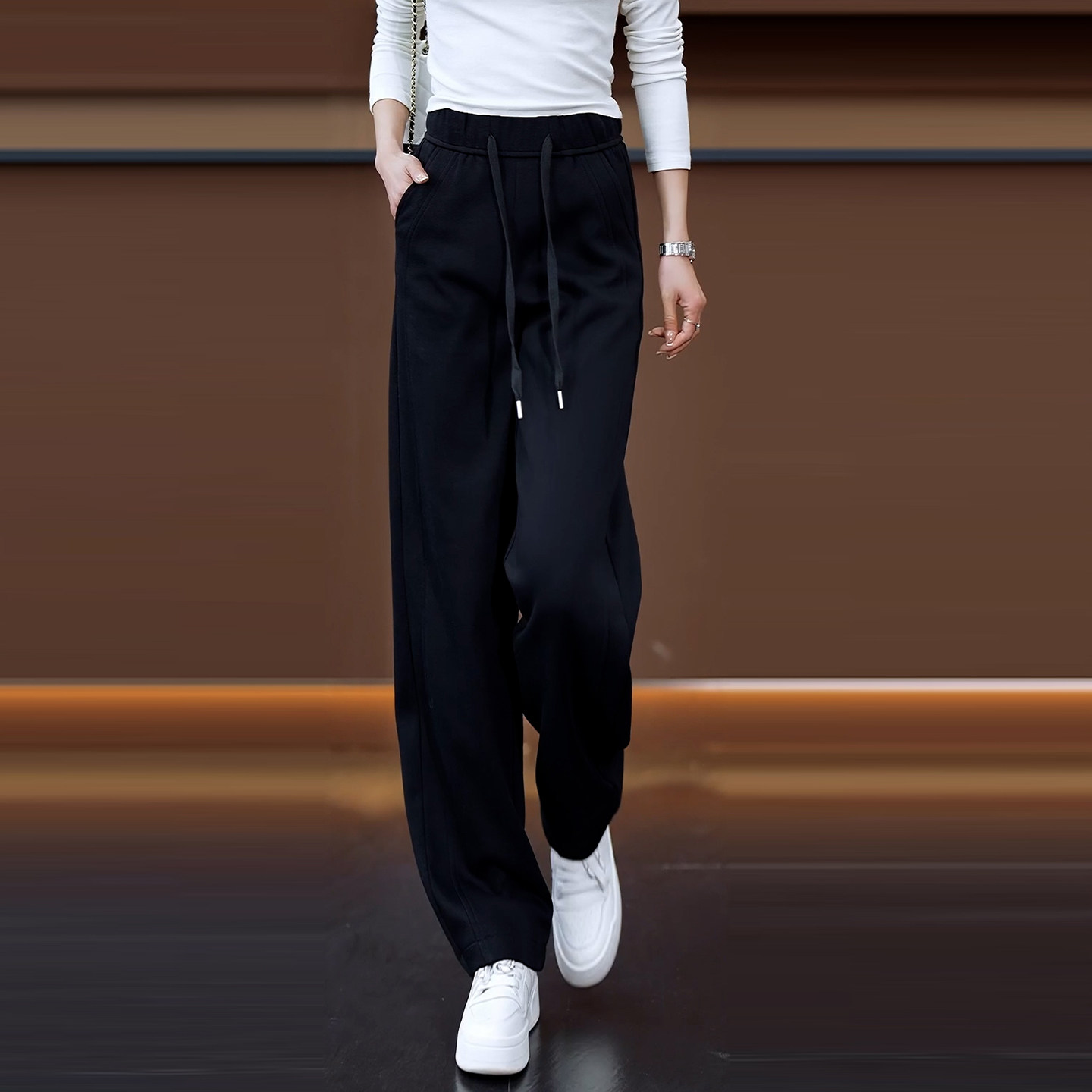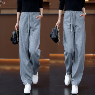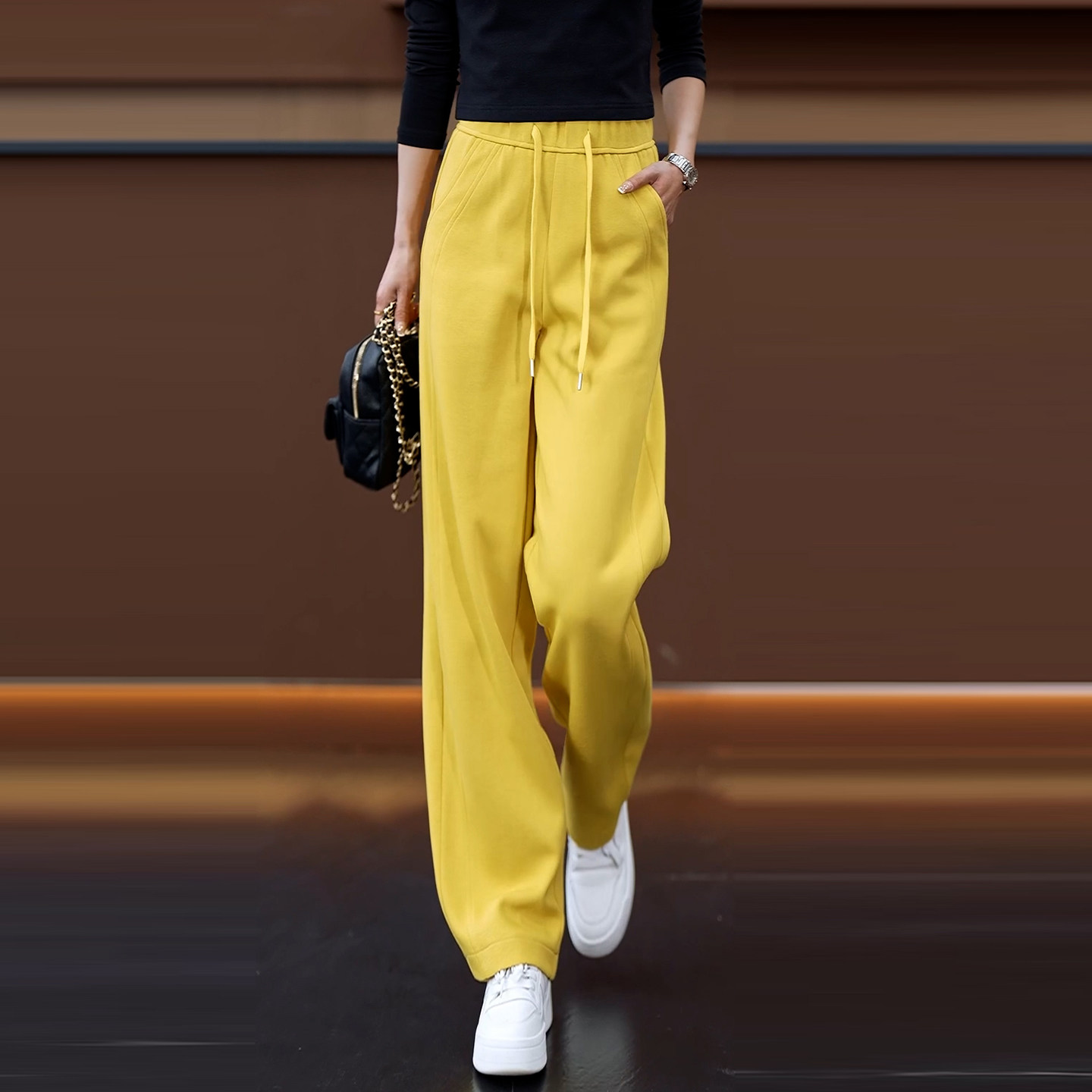 松紧腰显瘦直筒弯刀运动裤 女春秋2026新款 阔腿香蕉裤 百搭黄色窄版