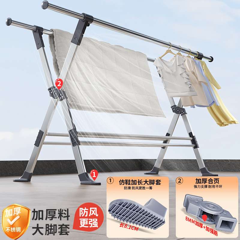 晾衣杆折叠落地晾衣架双杆家用阳台不锈钢户外伸缩挂衣架晒被架子