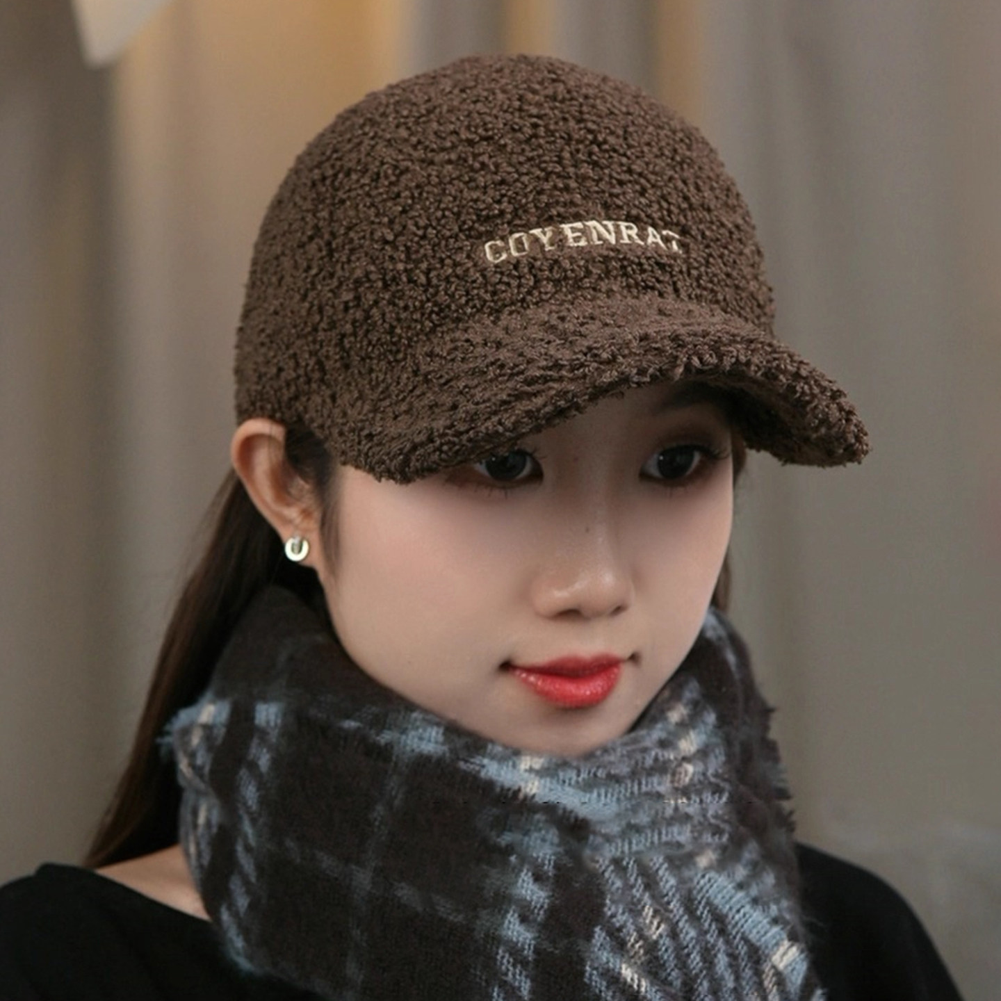 2025秋冬新款 保暖防寒护耳帽显脸小棒球帽潮 羊羔绒鸭舌帽子女冬季