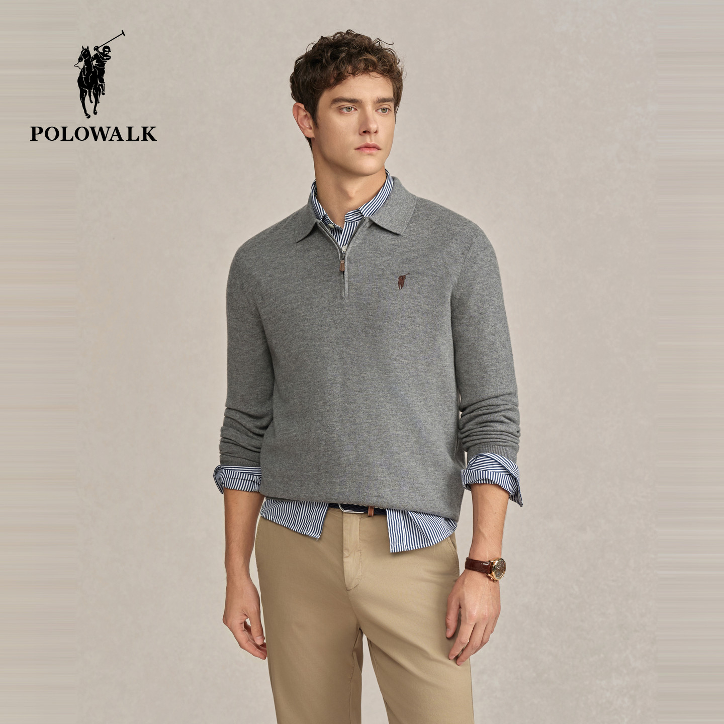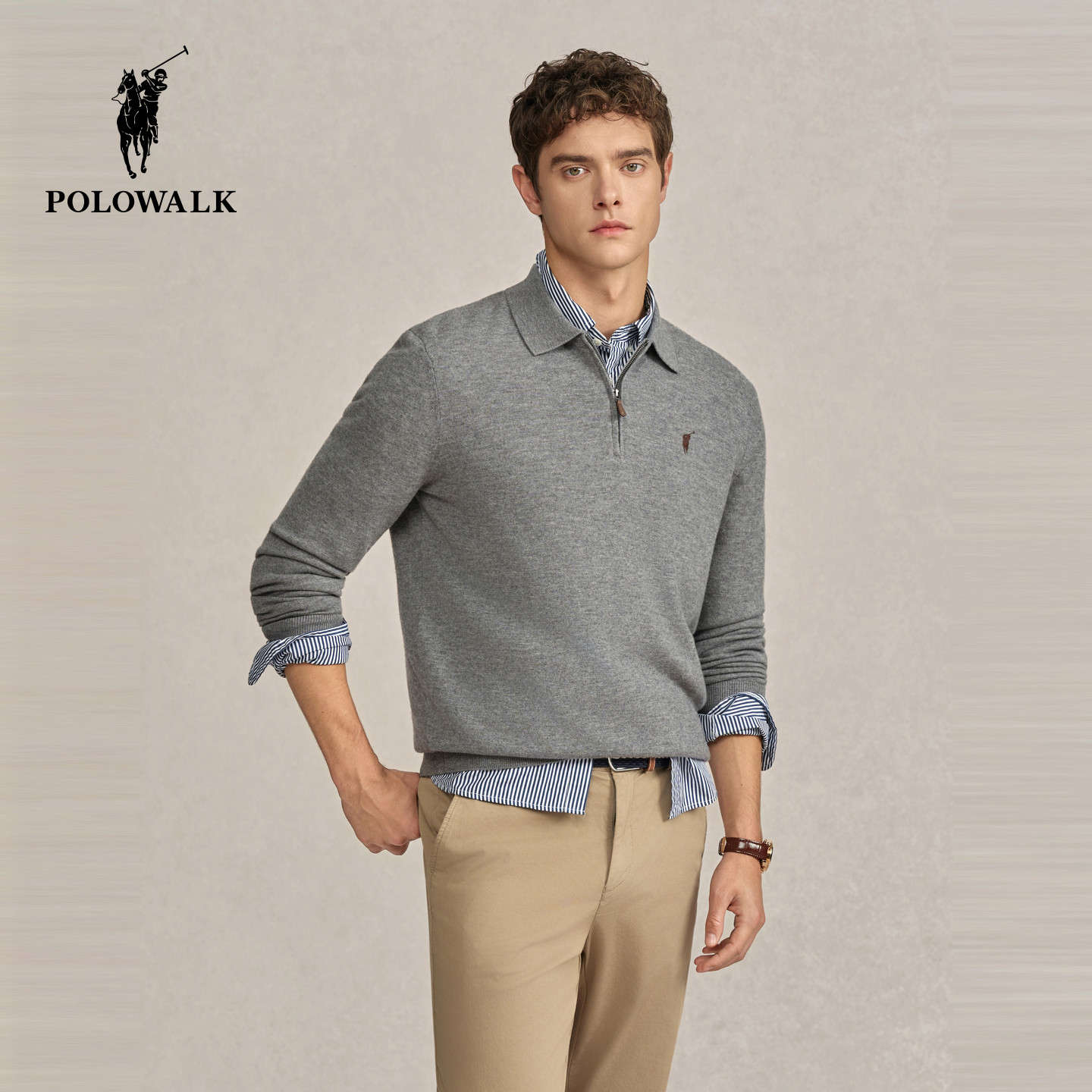 POLOWALK男式 防螨 羊毛衫 2025冬季 100%绵羊毛上衣 新品 5A抗菌