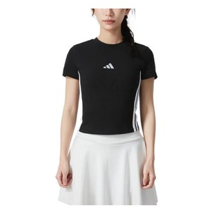 修身 女 adidas 适中 常规 常规款 条纹其他 套头 T恤 布布