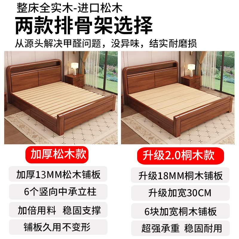 实木床中式 简约风1.8米卧室家用大床1.5双人床1.2单人床出租房用