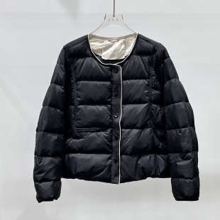 2025秋冬新款 小个子白鸭绒羽绒服 女方糖波浪门襟撞色圆领茧型短款