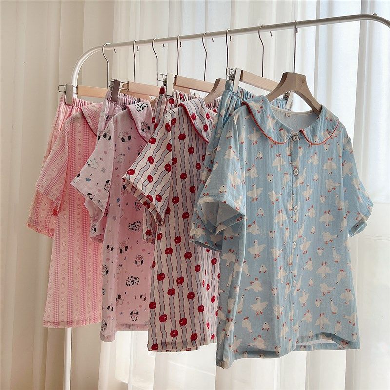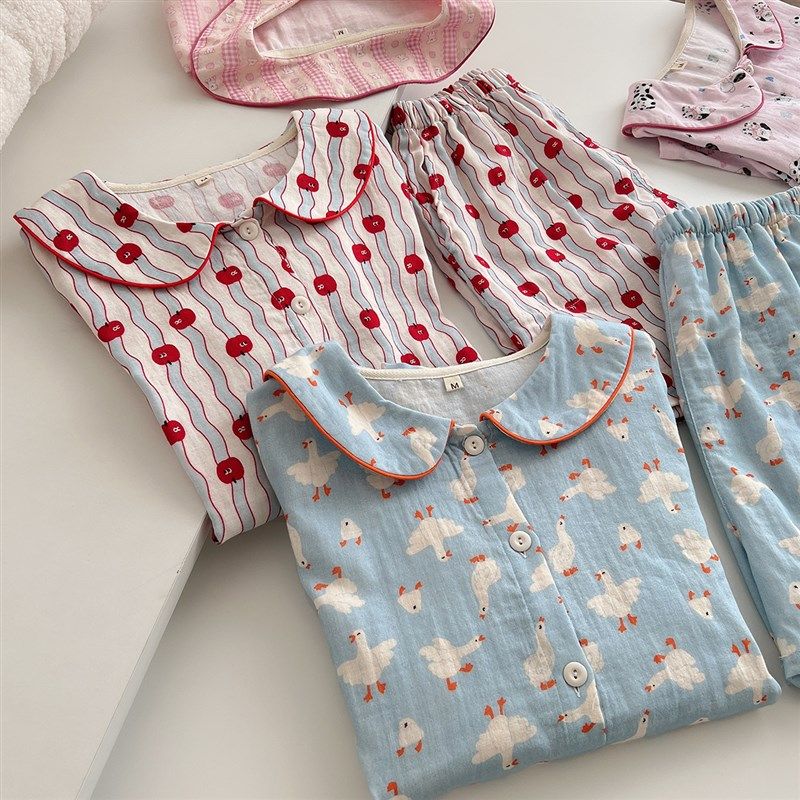 2025新款 家居服套装 全棉简约长袖 提花双层纯棉纱布睡衣女春秋季
