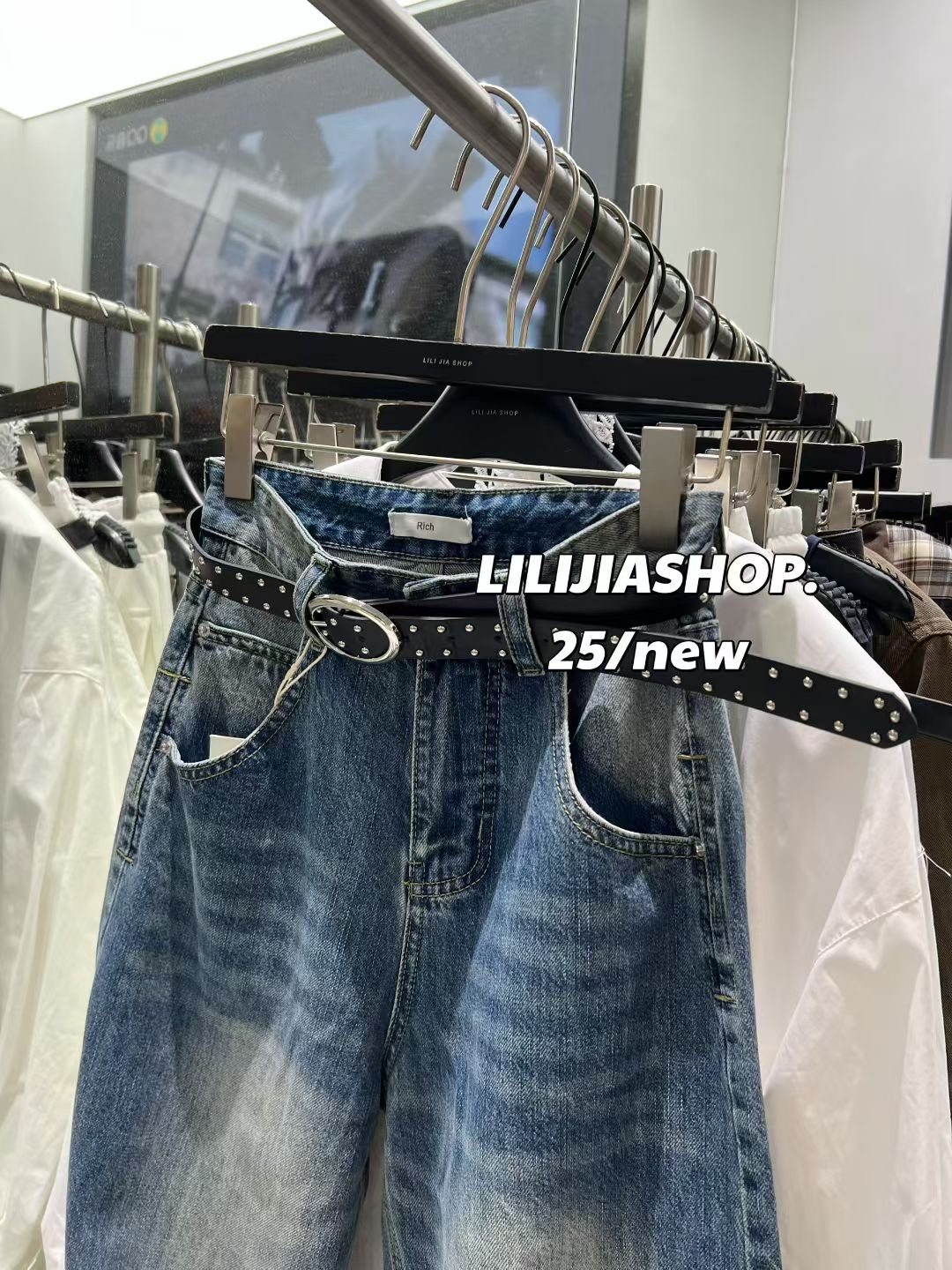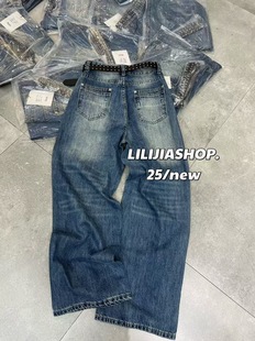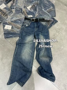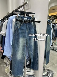 韩版 新款 时尚 百搭宽松显瘦高腰阔腿牛仔裤 Miss家 女长裤 2025秋季