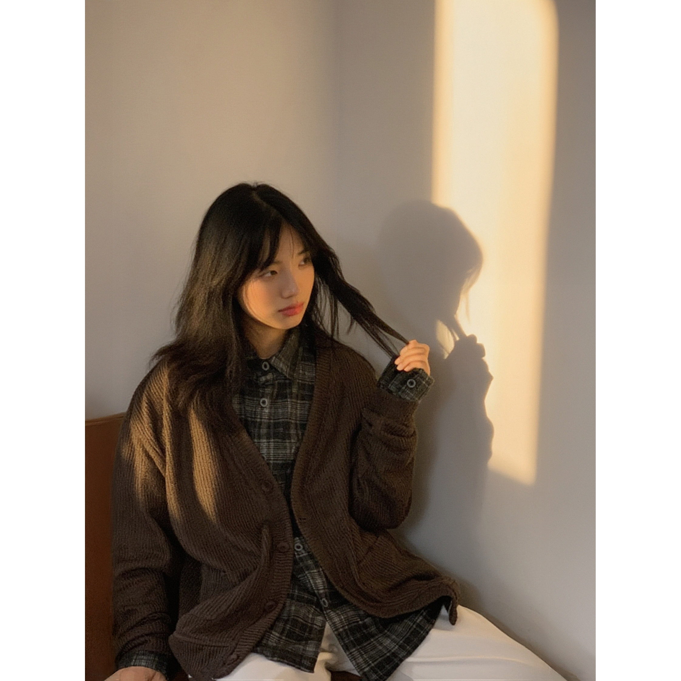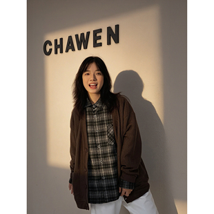 vintage街头宽松百搭慵懒风休闲针织衫 日系复古毛衣开衫 外套秋季