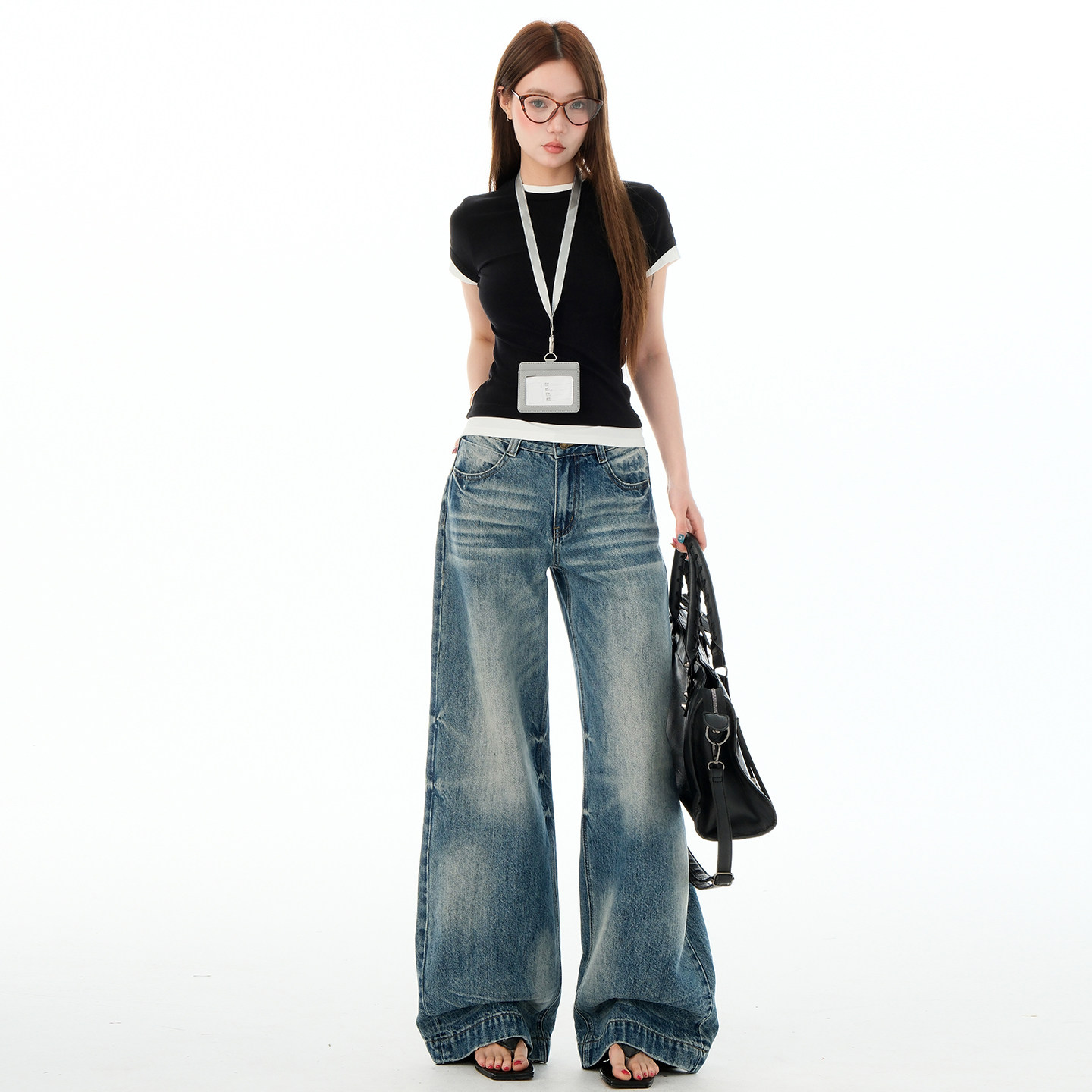 设计感宽松直筒拖地裤 BRN美式 新款 女秋季 复古水洗做旧阔腿牛仔裤