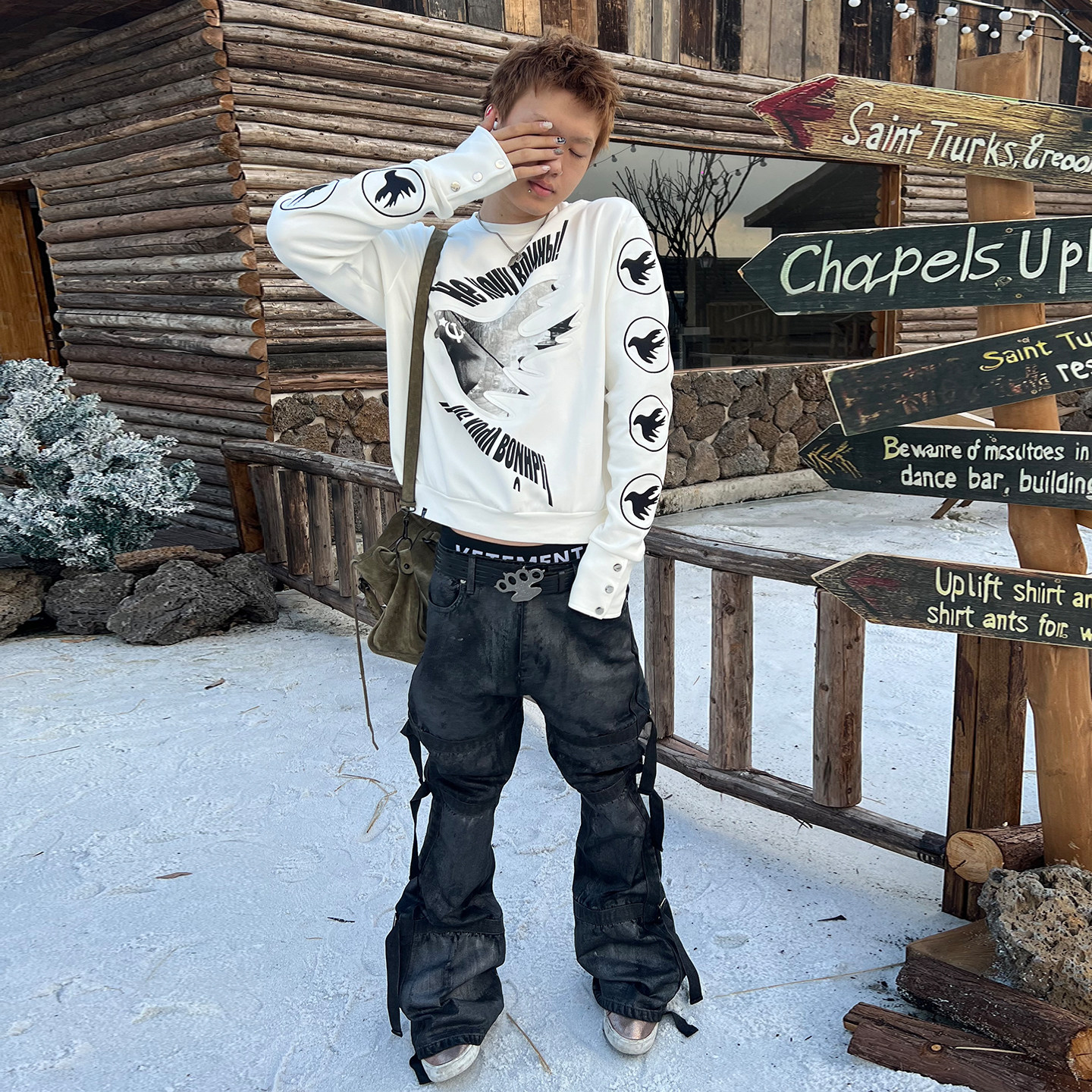 卫衣美式 Vinkid 和平鸽长袖 满袖 潮流小众嘻哈国潮休闲上衣 云梯