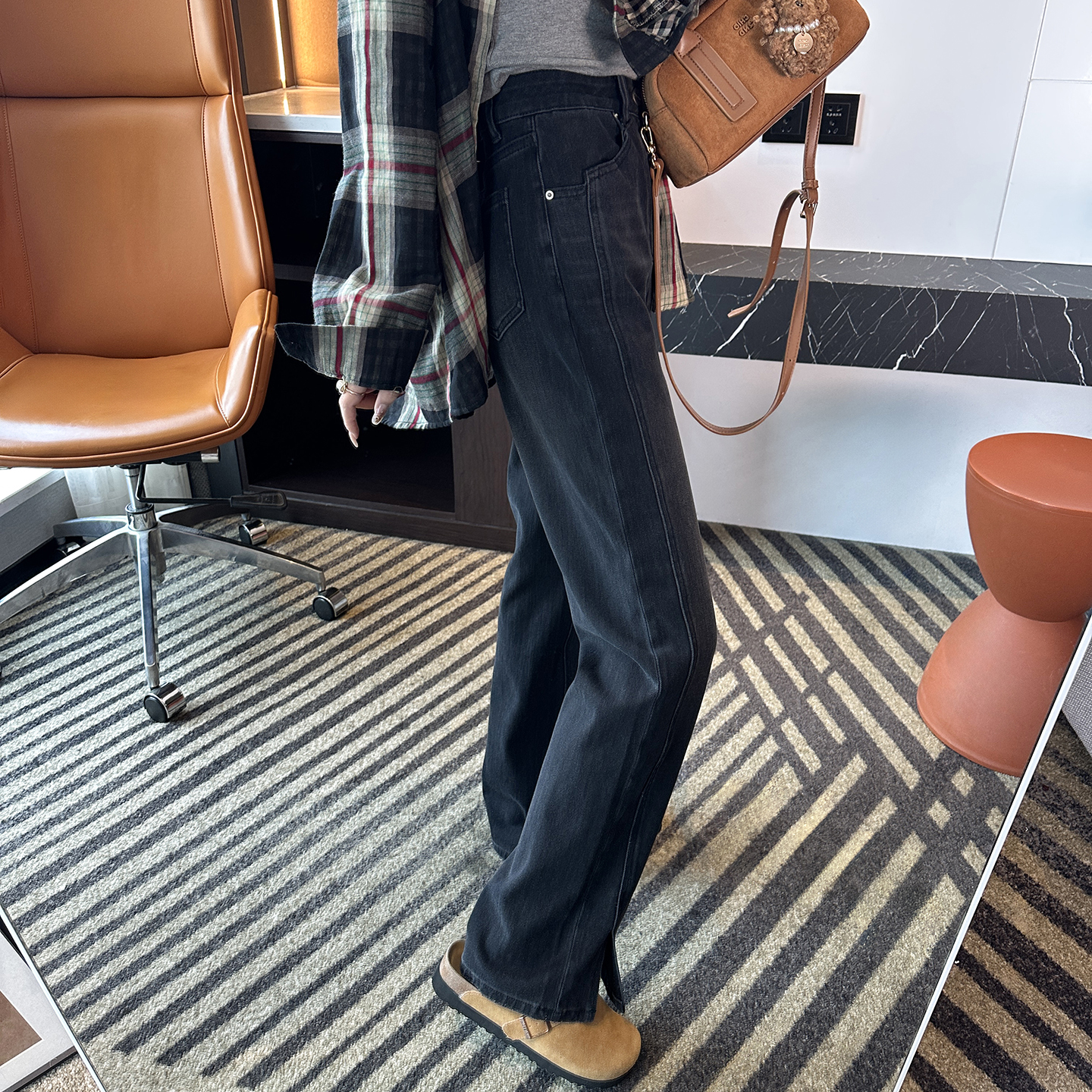黑色微喇叭牛仔裤 女2025年秋冬加绒高腰显瘦小个子九分直筒微喇裤