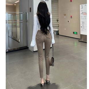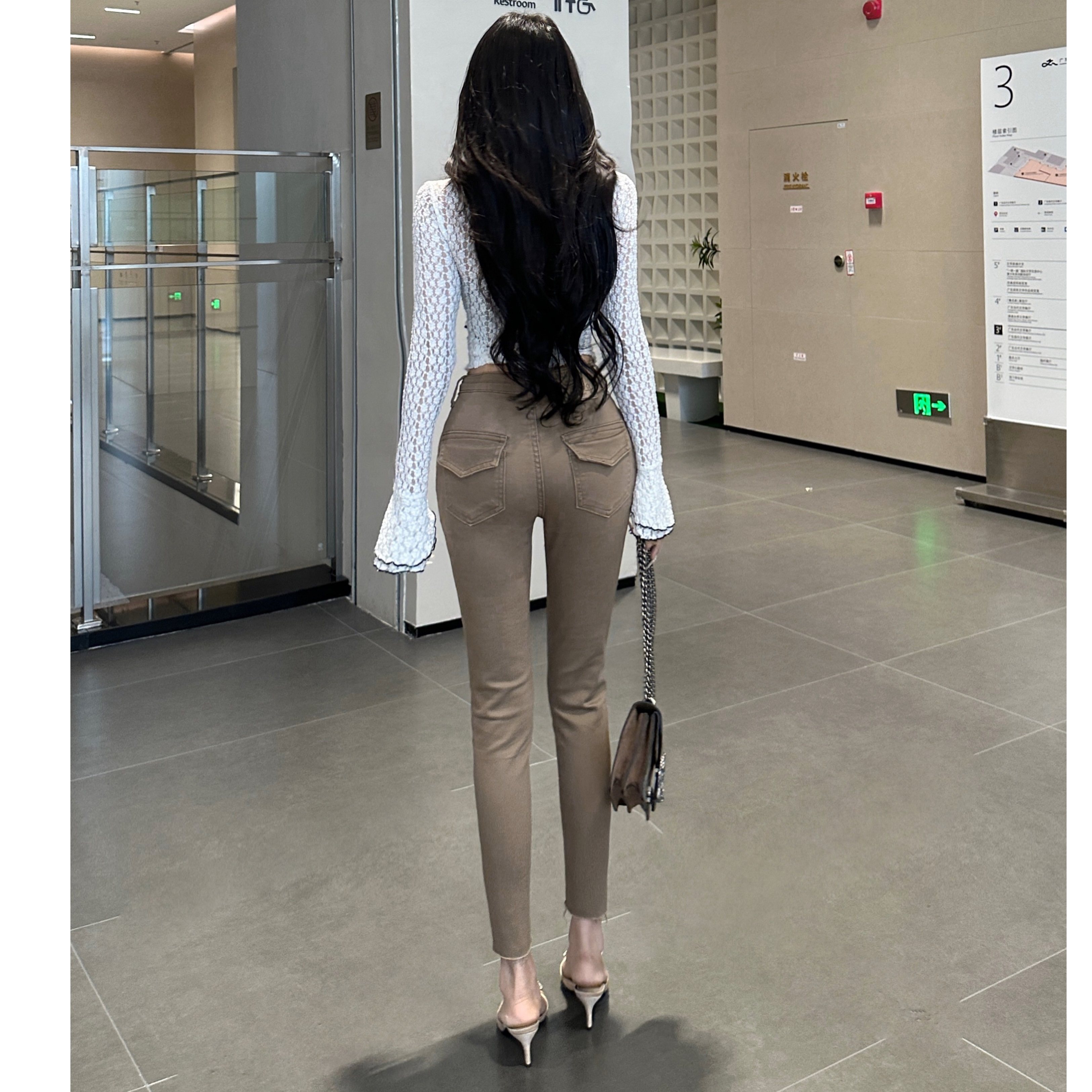 丰胯牛仔裤 铅笔裤 韩女丰胯卡其色咖色纯欲小个子小脚裤 江南美人
