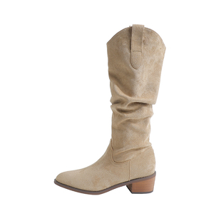 靴皮靴 时装 吴宣仪天美意千金靴复古厚底骑士靴加绒长靴女鞋 子新款