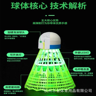 夜光羽毛球发光羽毛球晚上用带灯夜间发亮高弹力室外羽毛球训练球