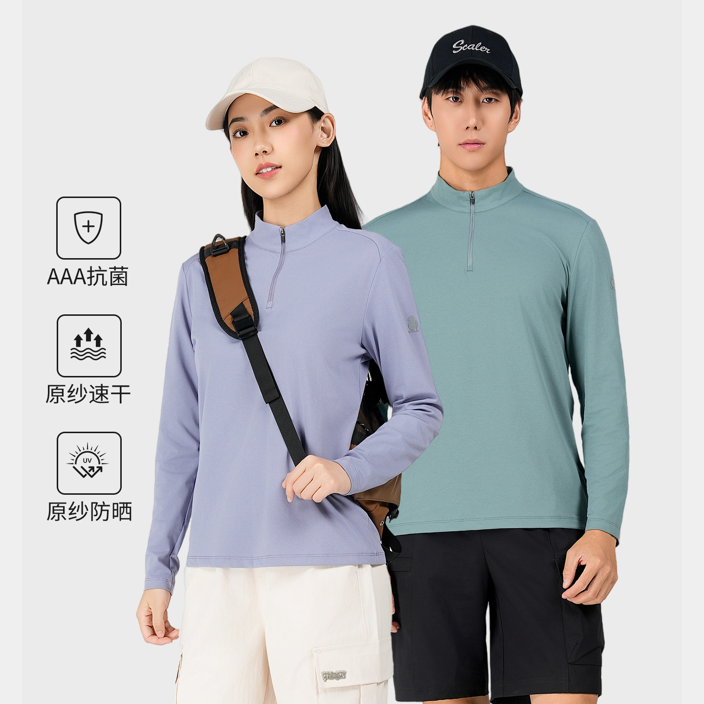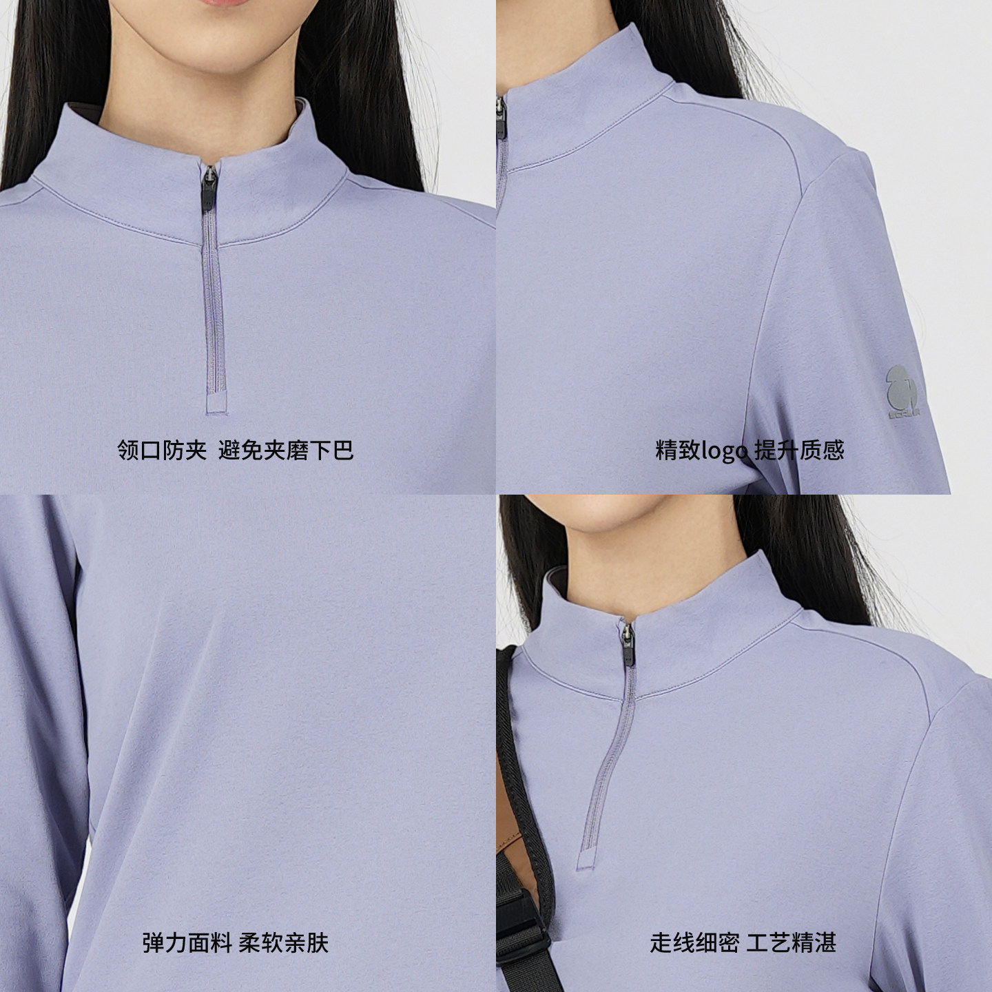 迪卡侬运动速干衣女长袖 T恤春秋冬半拉链上衣户外t恤健身登山SAL4