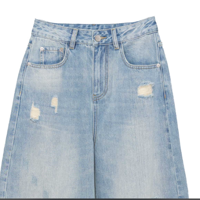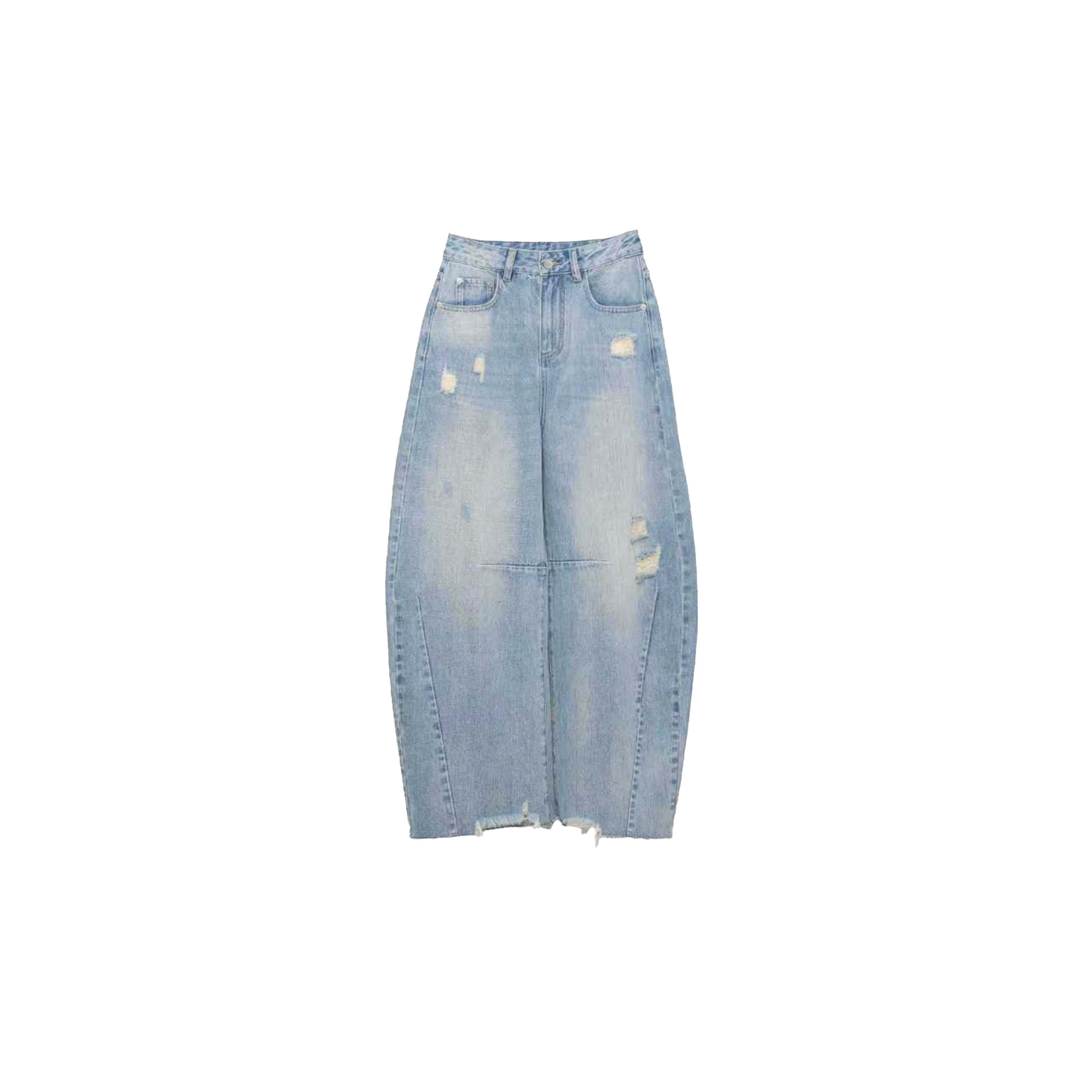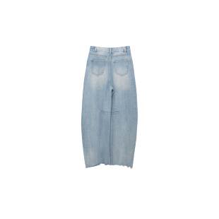 水洗百搭高腰休闲长裤 2025新款 谷可K1071复古破洞牛仔弯刀裤 GKE
