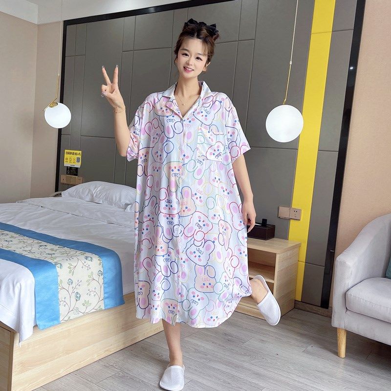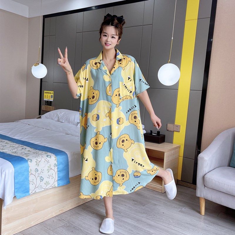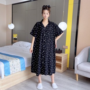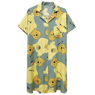绵绸长款 卡通棉绸加大码 短袖 夏季 孕妇睡衣连衣裙家居服 睡裙女薄款