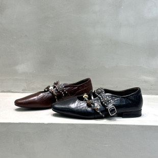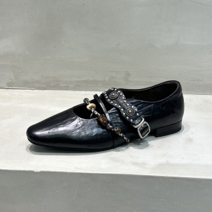 民族风铆钉真皮浅口平跟一字带玛丽珍单鞋 新款 2026秋季 欧洲站女鞋