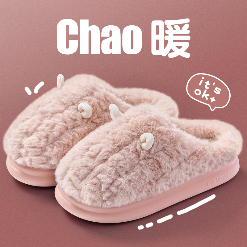 加绒毛毛厚底室内防滑家居保暖月子鞋 女士秋冬季 男 棉拖鞋 2025新款