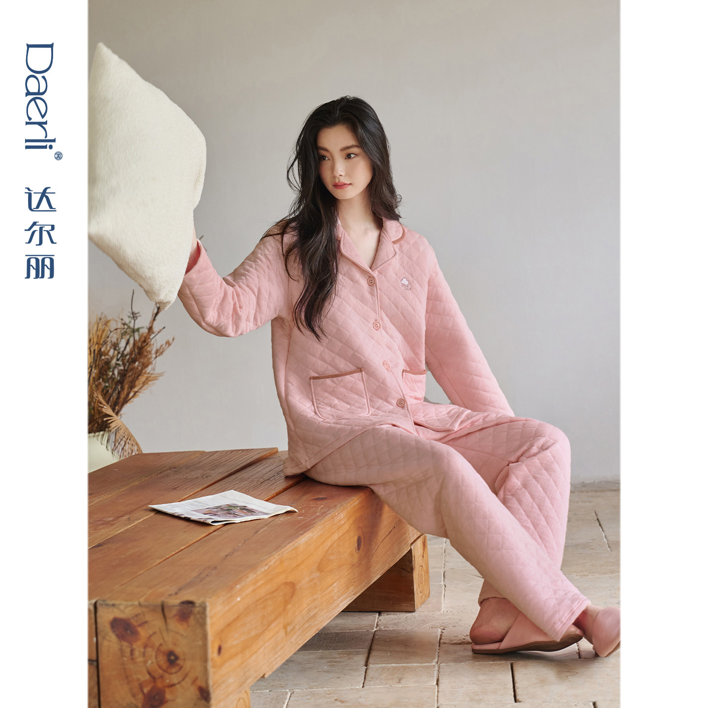 达尔丽恒温保暖夹棉纯棉睡衣男女秋冬新款 三层空气棉情侣家居服厚