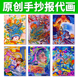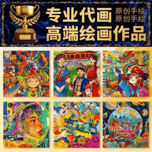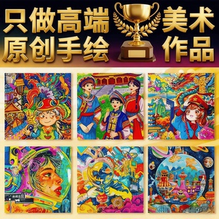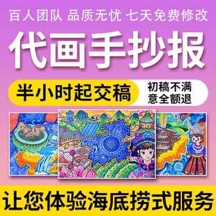 手抄报代画绘画作品美术儿童主题高端定制原创卡通画水彩色科幻画