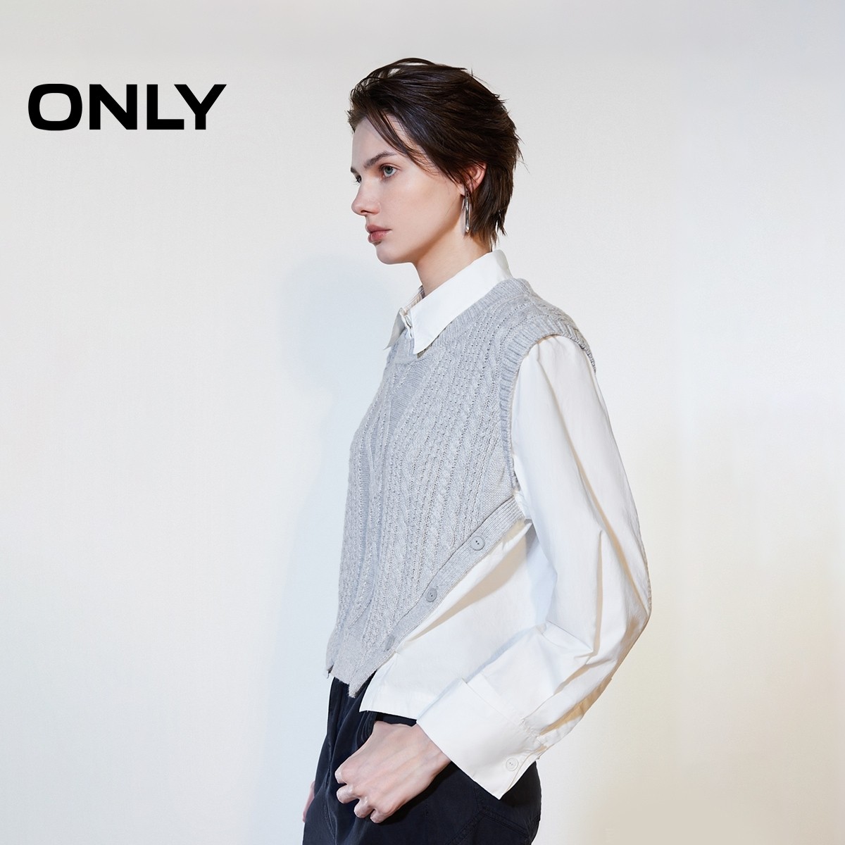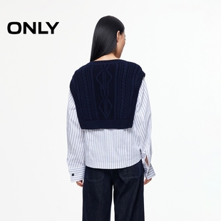 ONLY2025秋冬新款 女 休闲百搭宽松假两件叠穿撞色针织条纹蕾丝衫