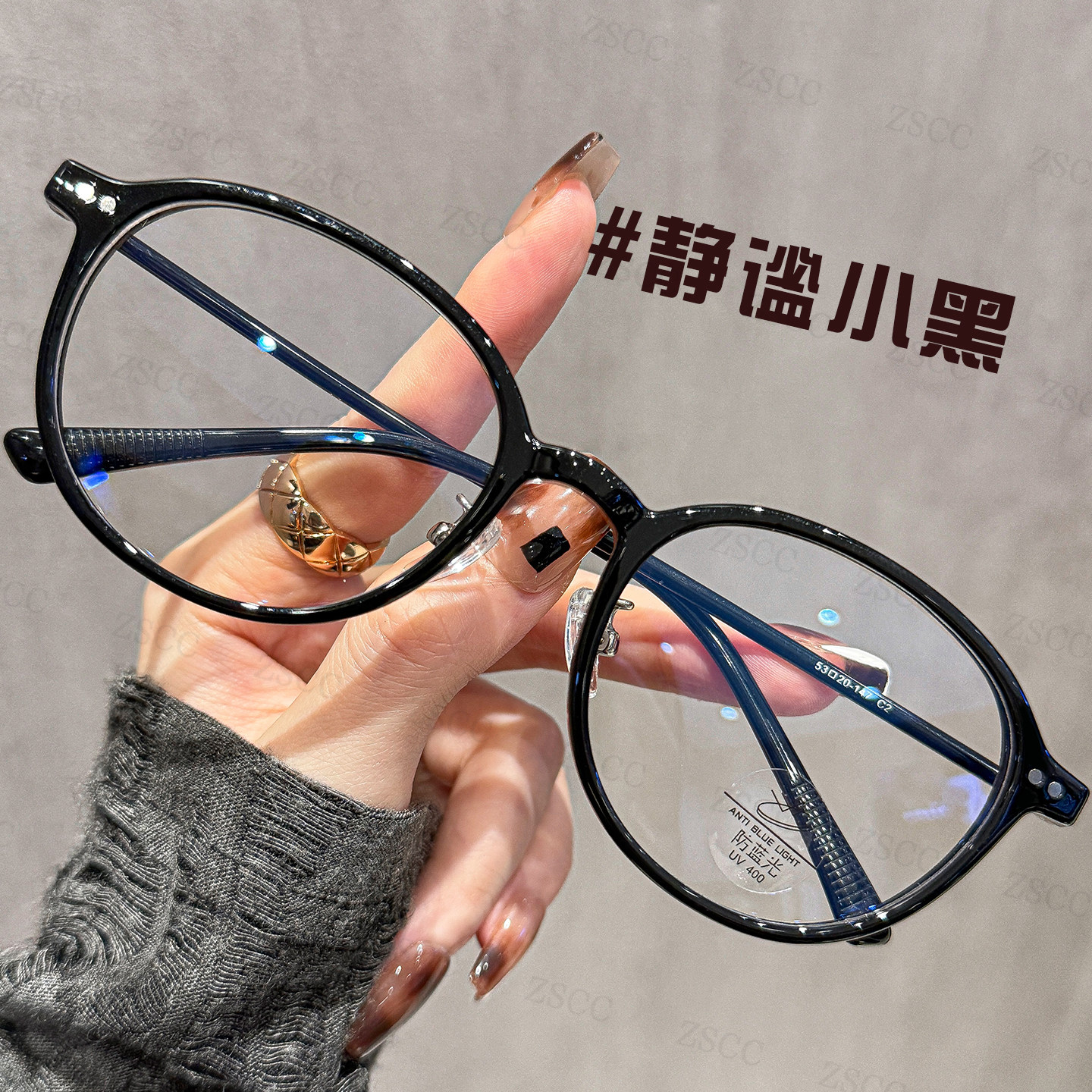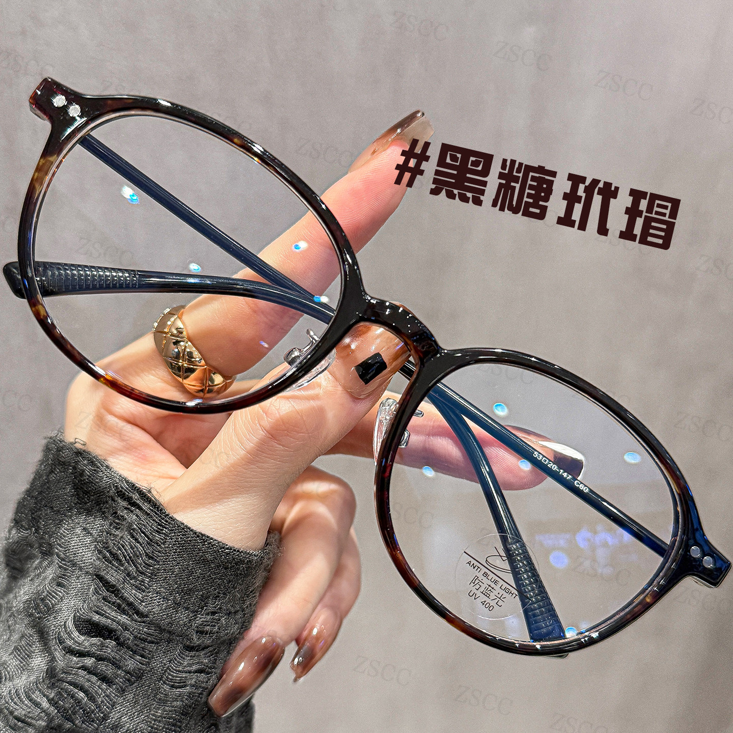 大框超轻TR90近视架框男女同款 圆形复古潮眼镜定制成品光学镜纯钛