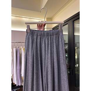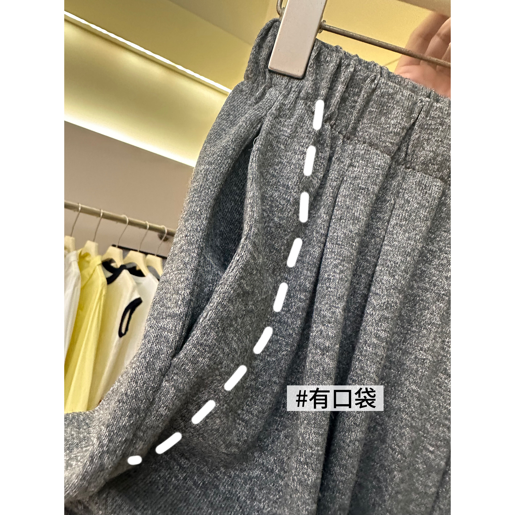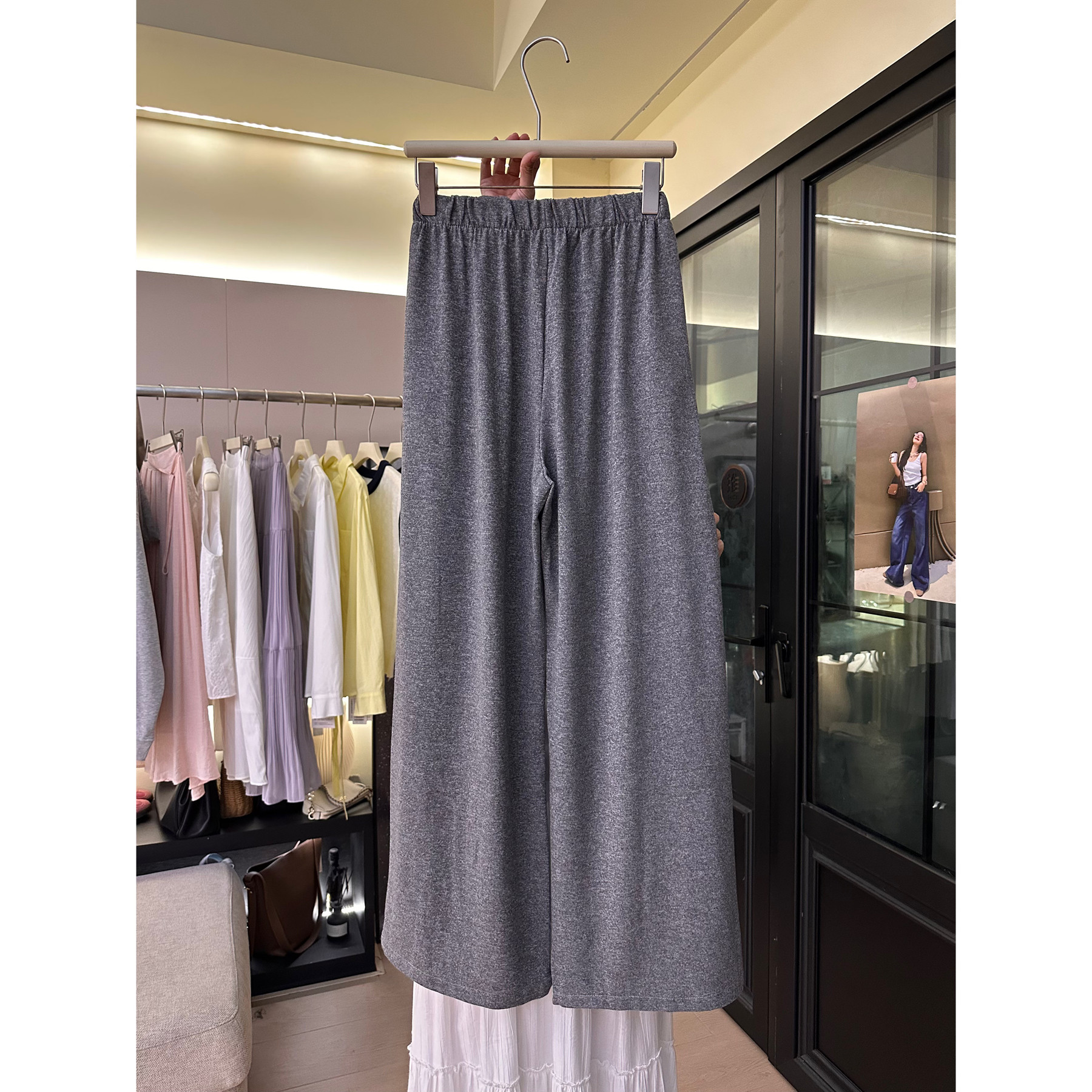 针织裤 F28灰色糯米裤 2025秋高腰垂感慵懒风休闲阔腿裤 卫裤 女薄款