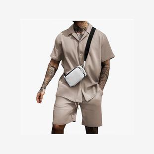 短裤 sui 新款 潮men 套装 短袖 舒适翻领衬衫 休闲 欧美男士 2025夏季