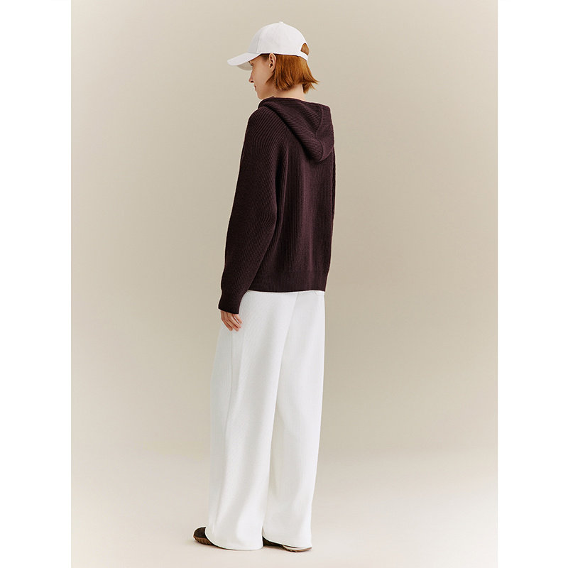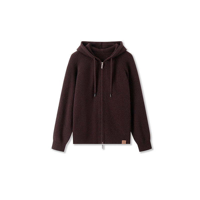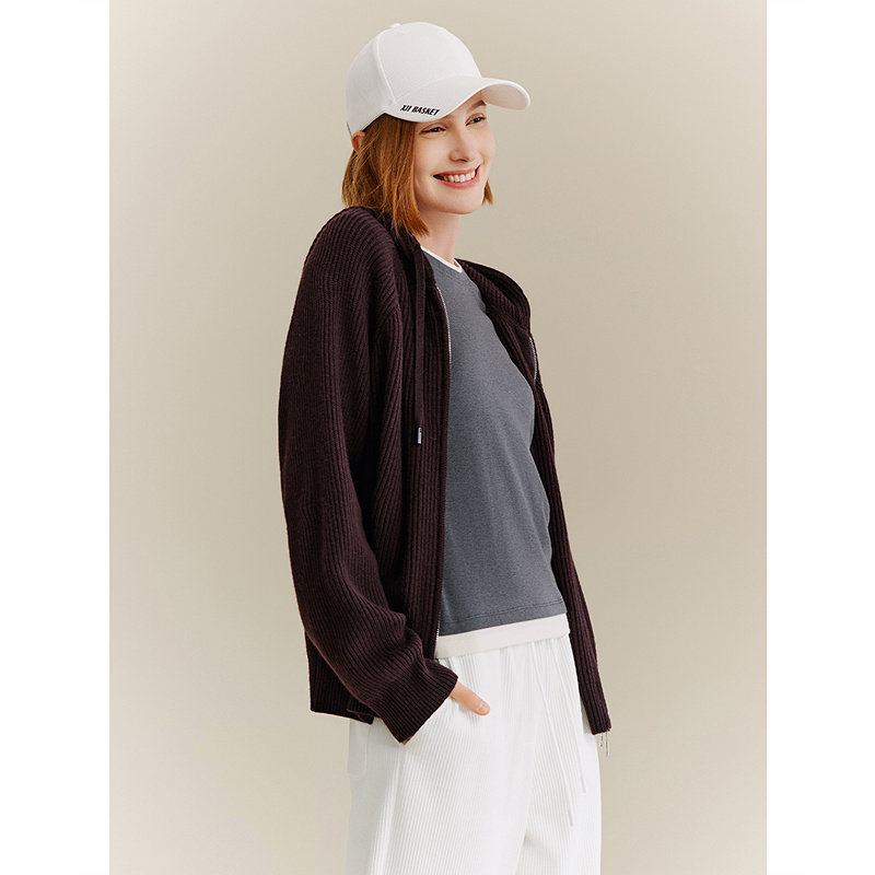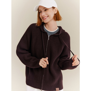 十二篮秋季 复古美拉德100%羊毛针织连帽卫衣外套女休闲开衫