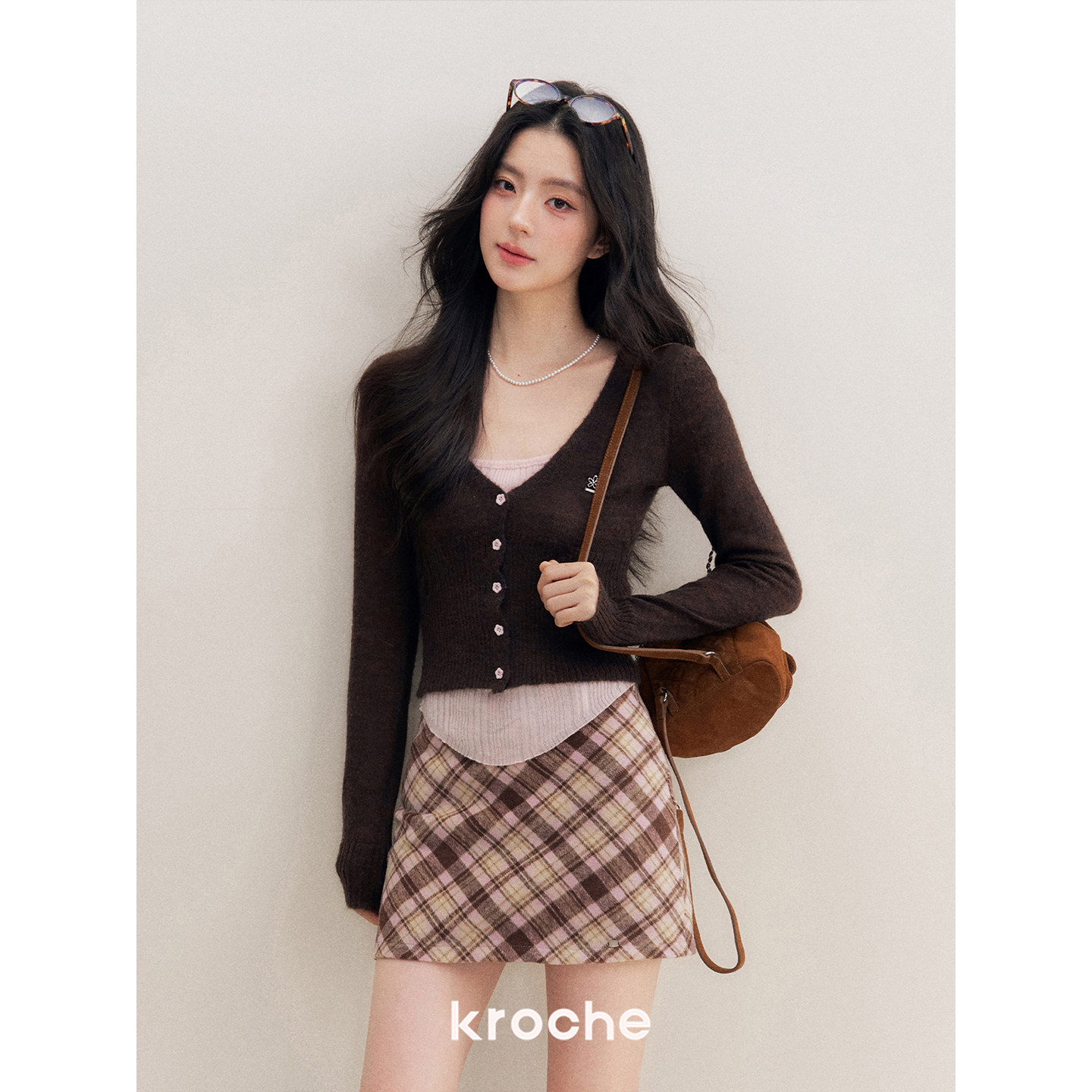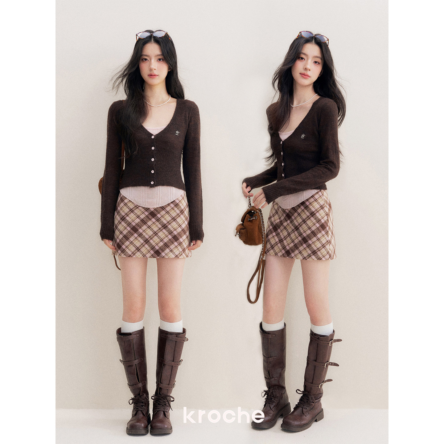 韩系超好看毛呢格子半身裙子女秋冬季 高腰显瘦a字长裙 2025年新款