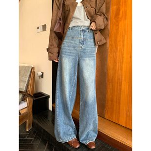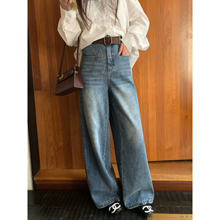 阔腿裤 NAZ那子大码 胖mm气质时尚 百搭显瘦直筒高腰烫钻牛仔裤 秋季