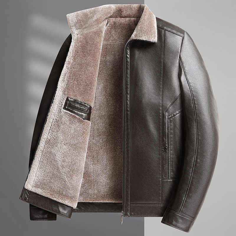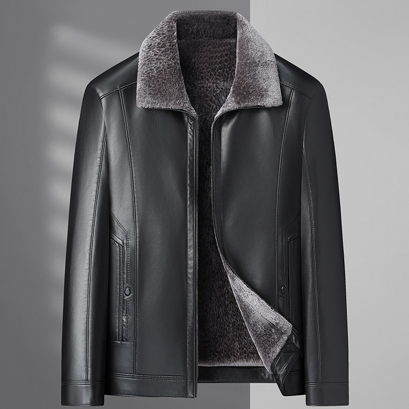 加绒加厚防寒皮夹克男款 冬季 保暖衣 皮衣外套男士 中老年爸爸装