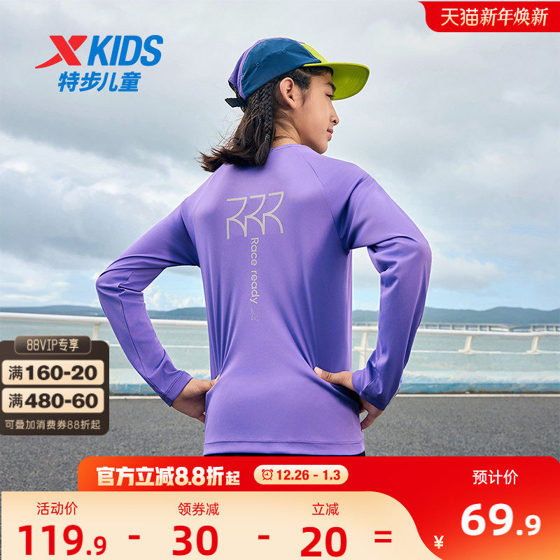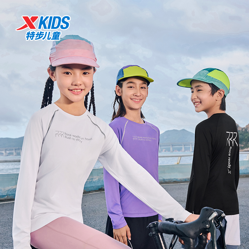 速干运动长袖 特步童装 男童圆领上衣中大童户外打底衫 新款 t恤 秋季